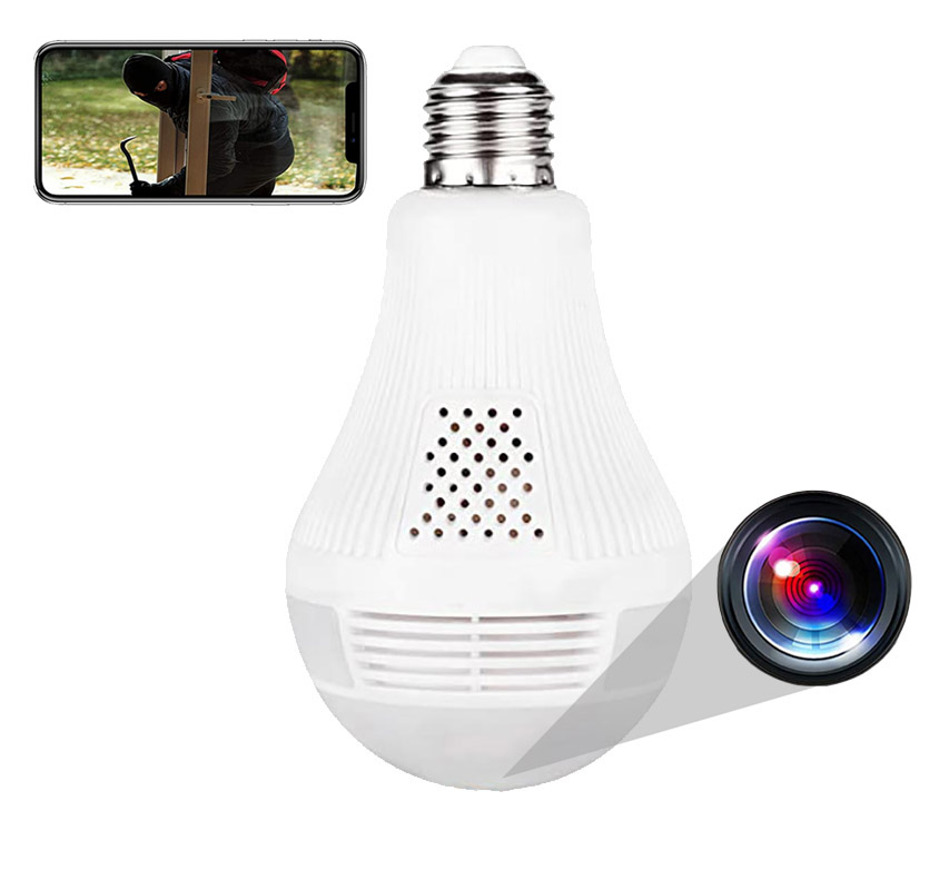 Ampoule Caméra Espion 360° Infrarouge HD Bidirectionnelle WiFi + SD 8Go YONIS