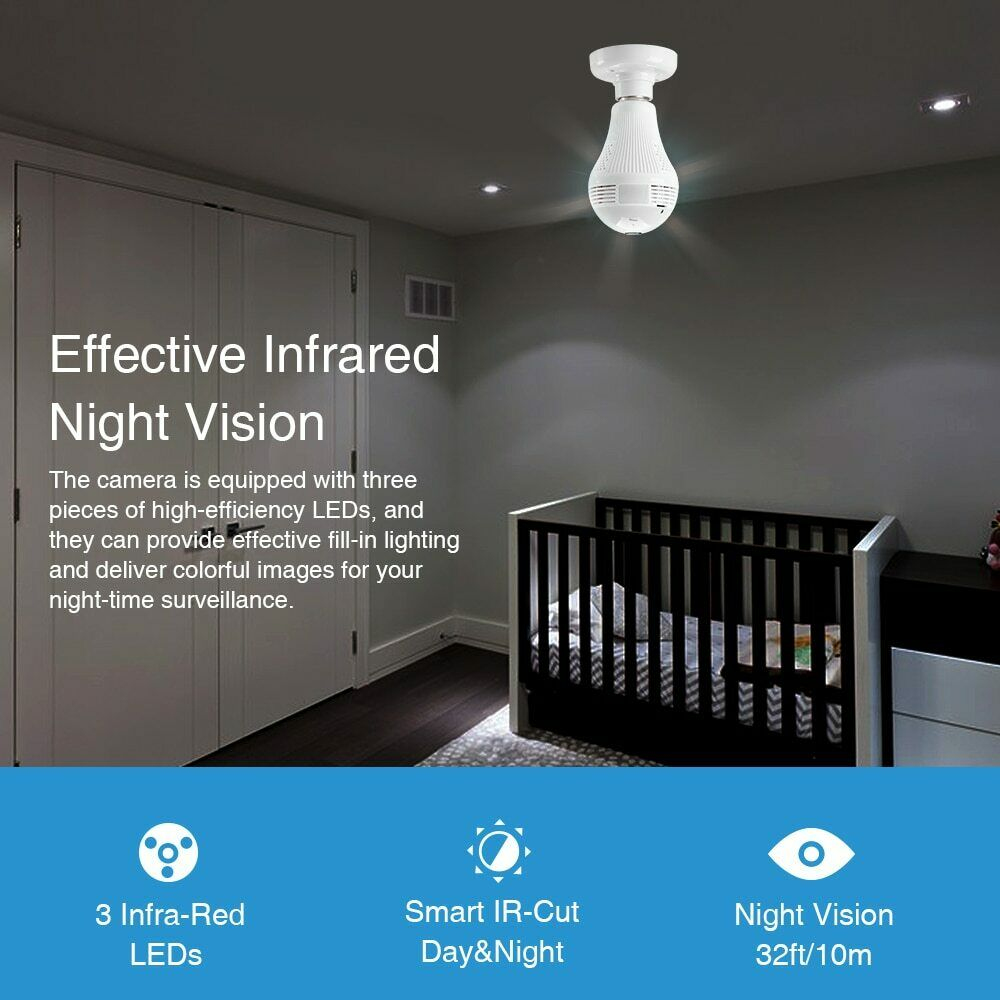 Ampoule Caméra Espion De Surveillance HD 2Mp 360° Wifi Ip E27 Vision Nocturne Ir YONIS