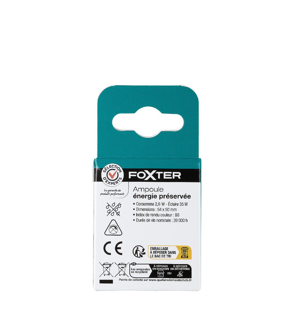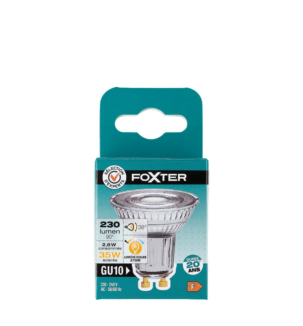 | Libellé | Ampoule LED spot verre GU10 35W lumière chaude - Sélection d'Experts - Foxter |