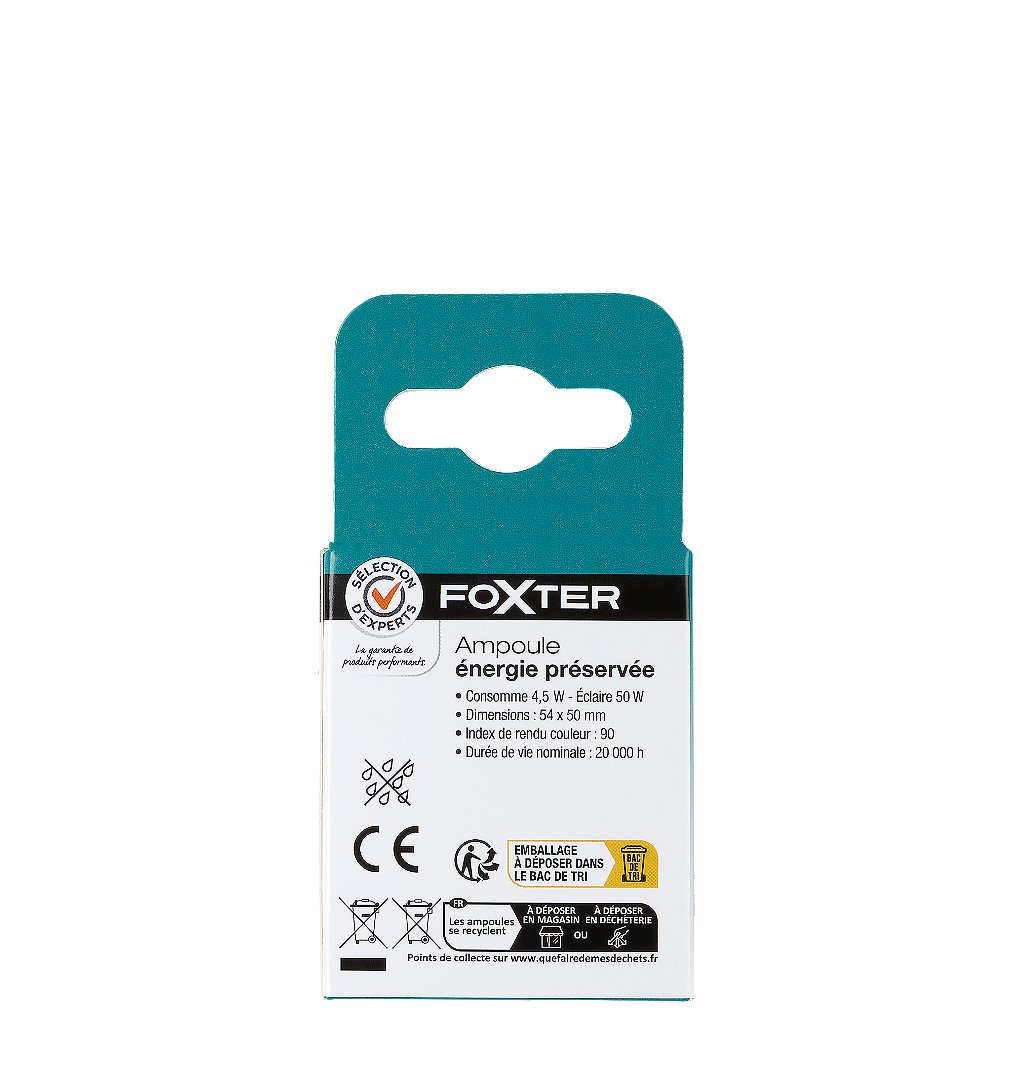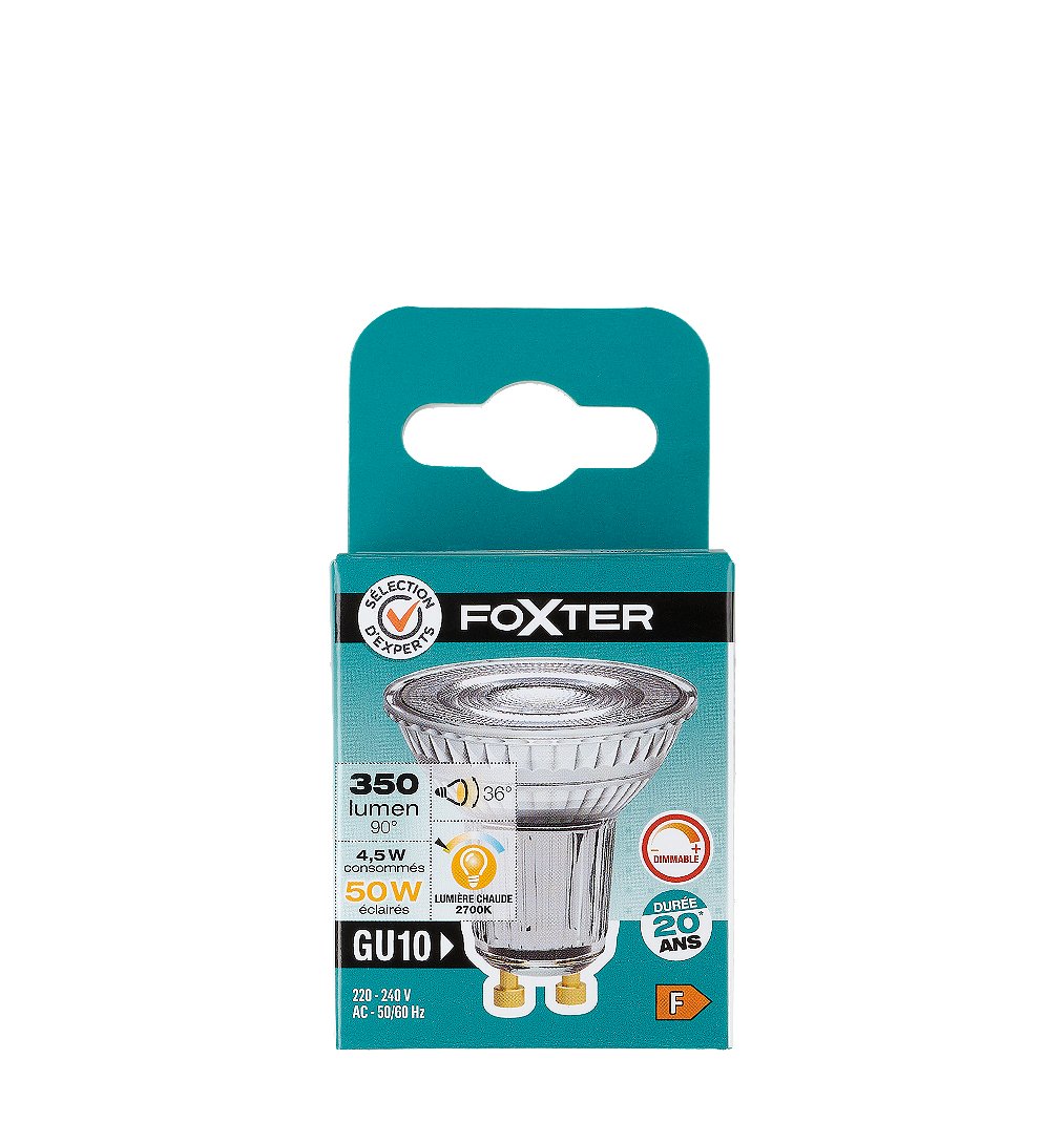 | Libellé | Ampoule LED spot verre GU10 50W lumière chaude - Sélection d'Experts - Foxter |