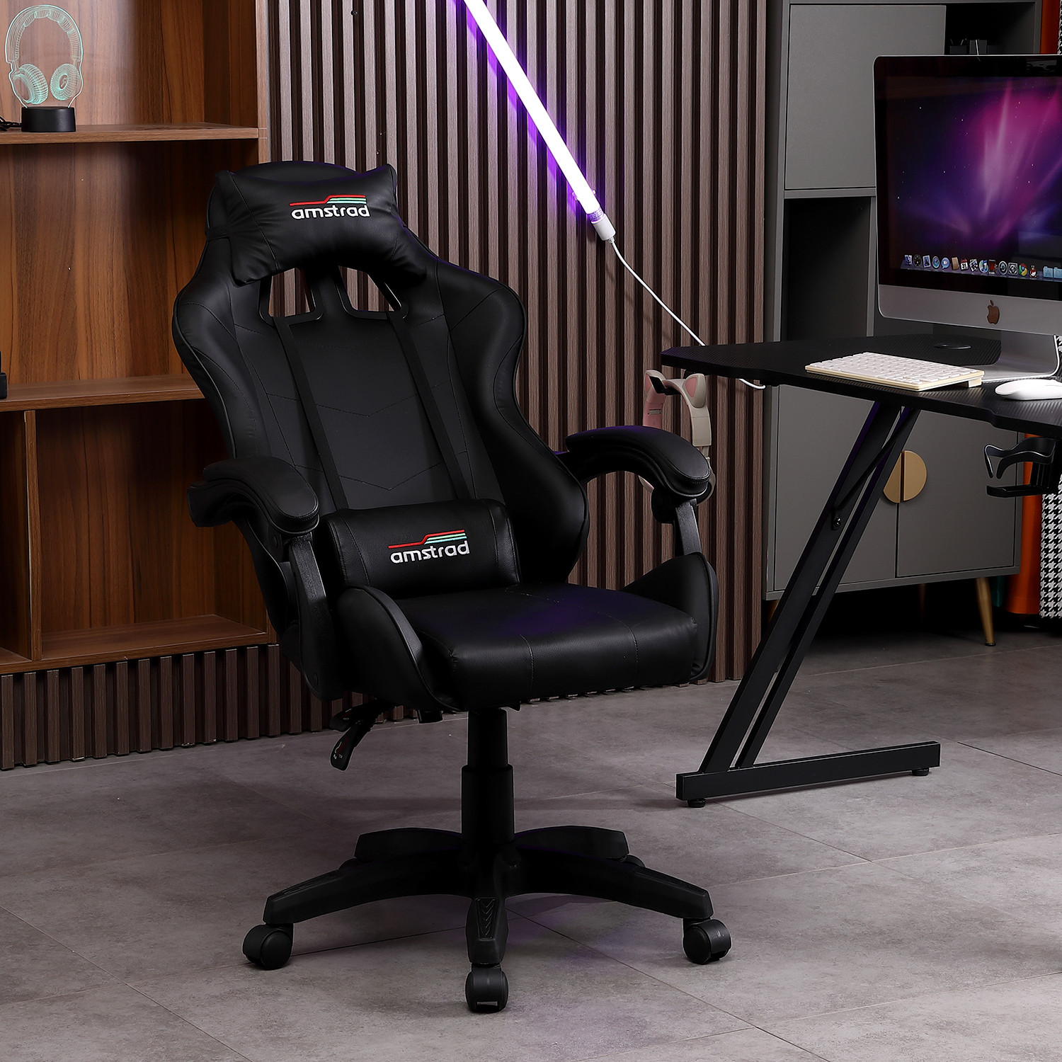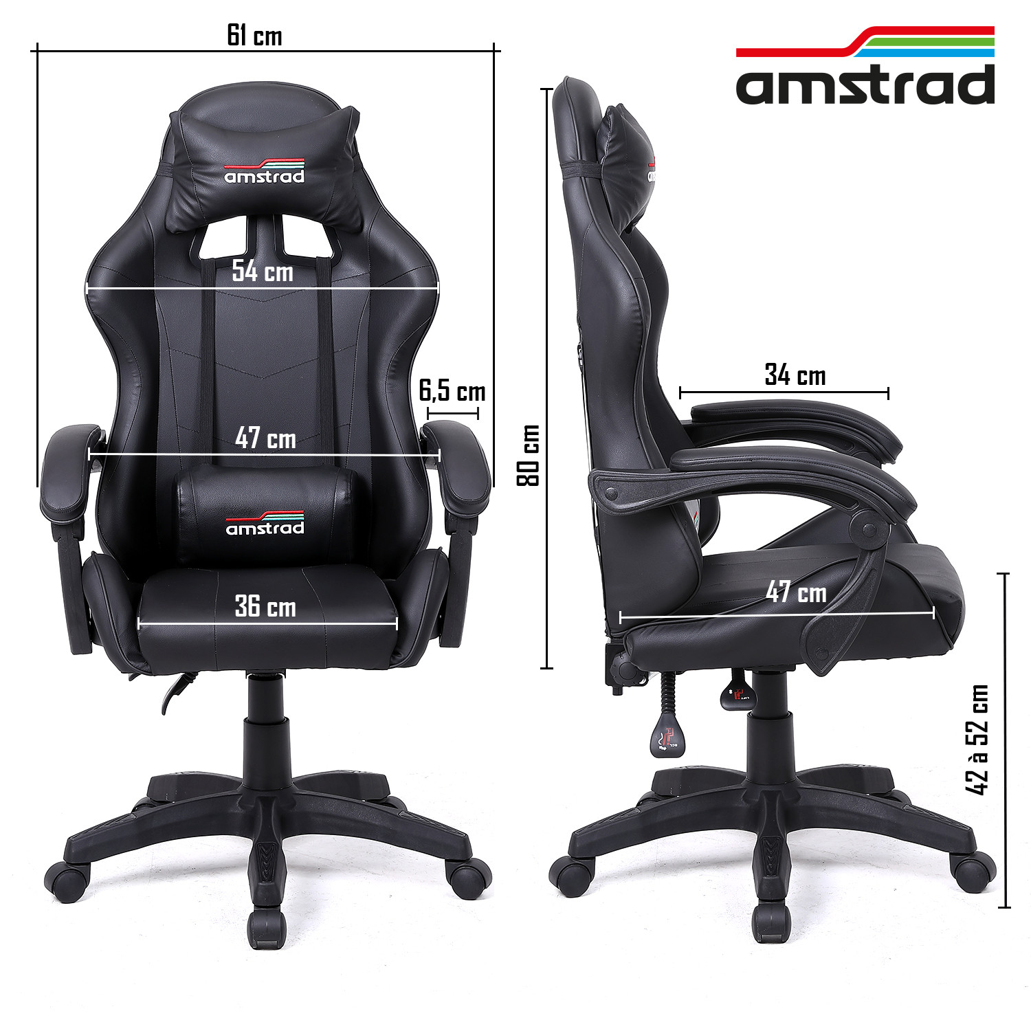 | Libellé | Amstrad AMS-800-DARK Fauteuil / Chaise de bureau Gamer coloris noir - coussin lombaire & appuie tête |