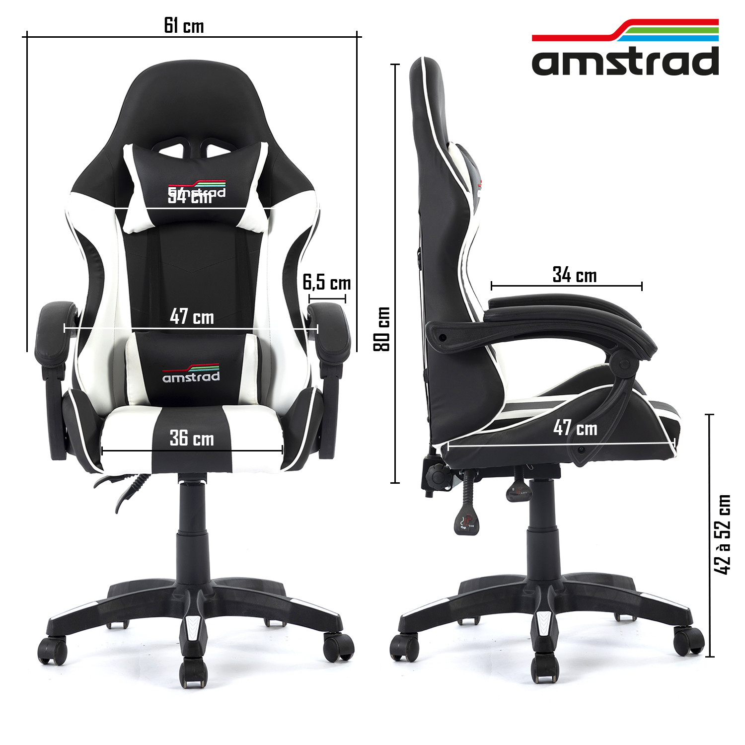 | Libellé | Amstrad AMS-800-WHITE Fauteuil / Chaise de bureau Gamer coloris noir & blanc - coussin lombaire & appuie tête |