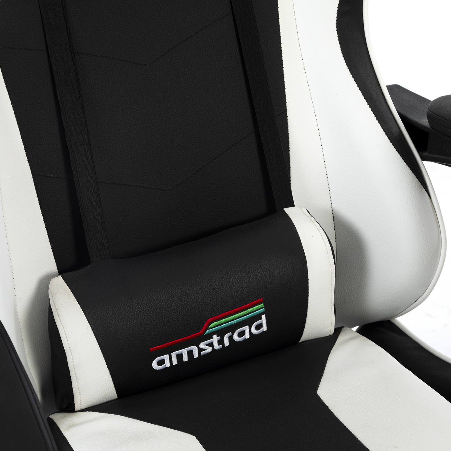 Amstrad AMS-800-WHITE Fauteuil / Chaise de bureau Gamer coloris noir & blanc - coussin lombaire & appuie