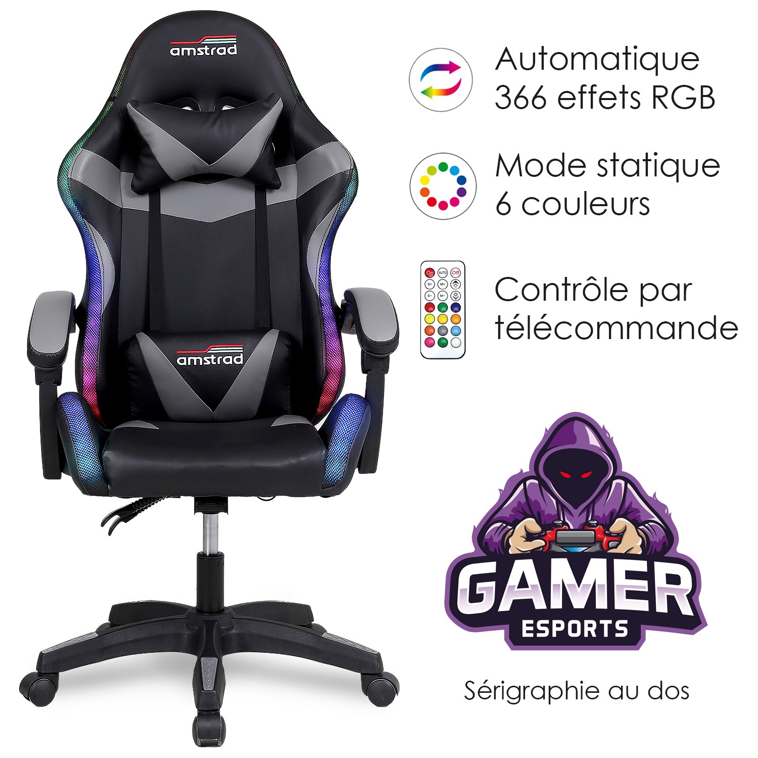 | Libellé | Amstrad AMS-900-LED-GAMER - Fauteuil gaming noir et gris - Serigraphie "Gamer" - Eclairage LED 366 effets - Télécommande |