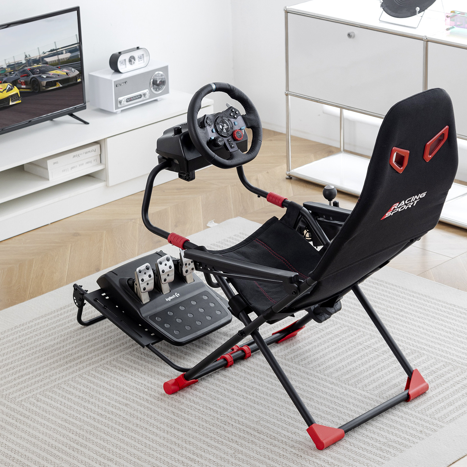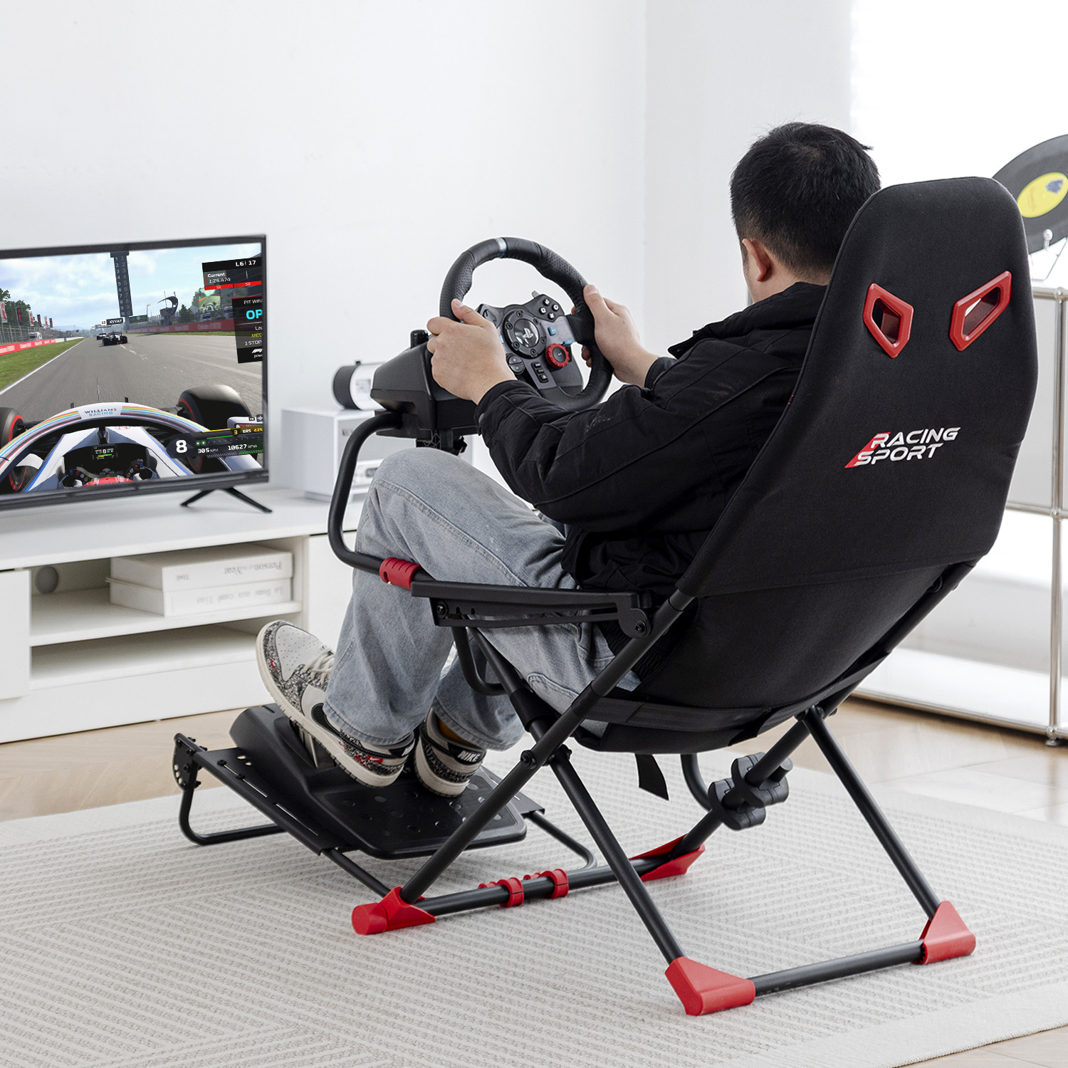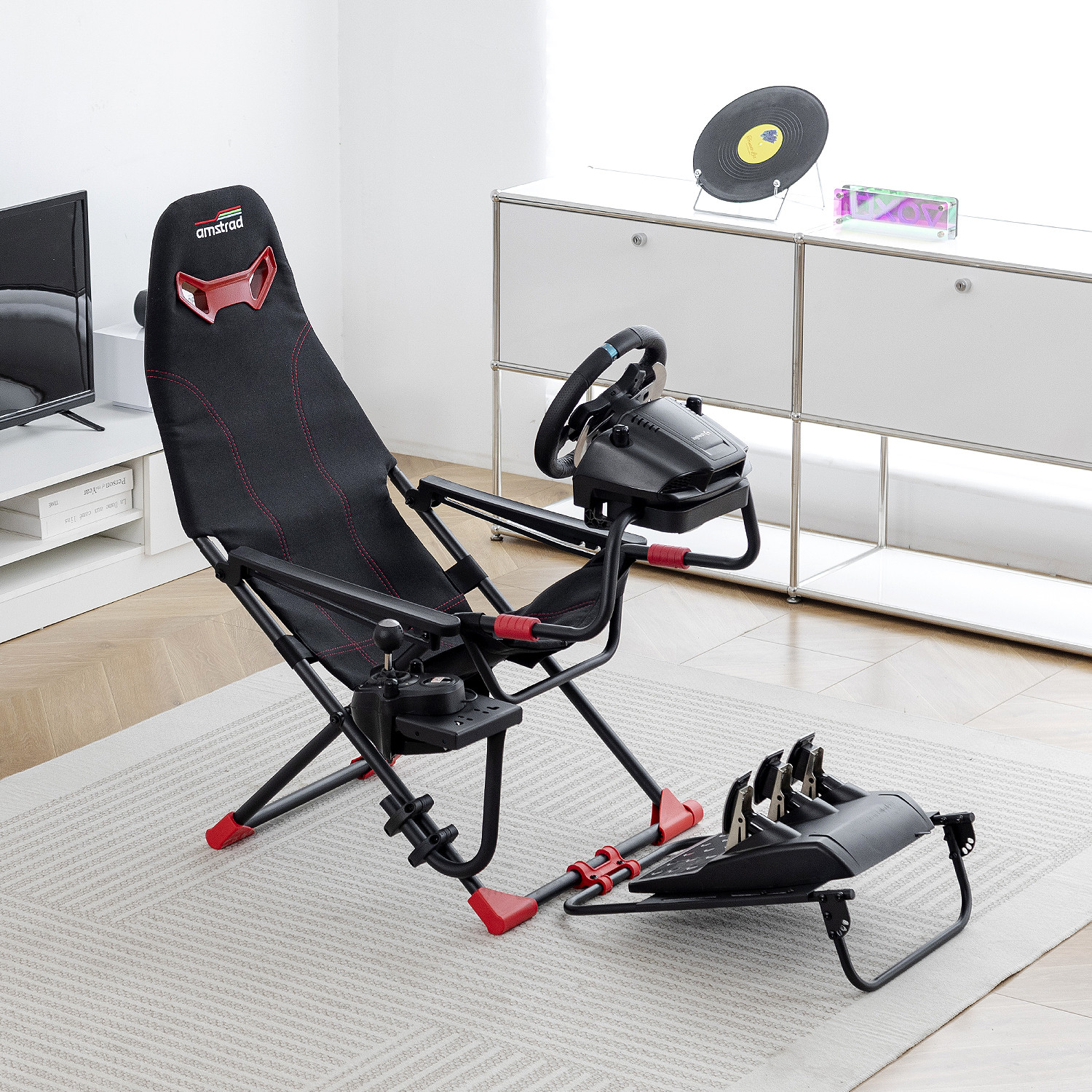 Amstrad AMS-RACING-SIM Siège de simulateur auto avec support pour volant & levier de vitesse - 3 niveaux