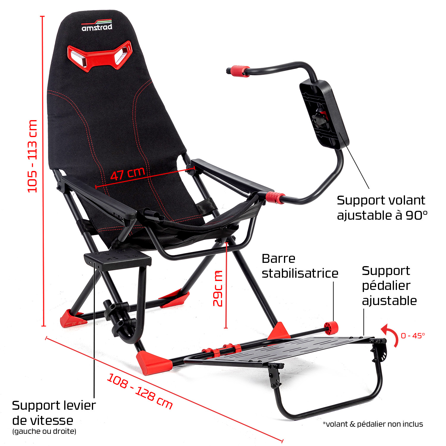 | Libellé | Amstrad AMS-RACING-SIM Siège de simulateur auto avec support pour volant & levier de vitesse - 3 niveaux de réglage hauteur |