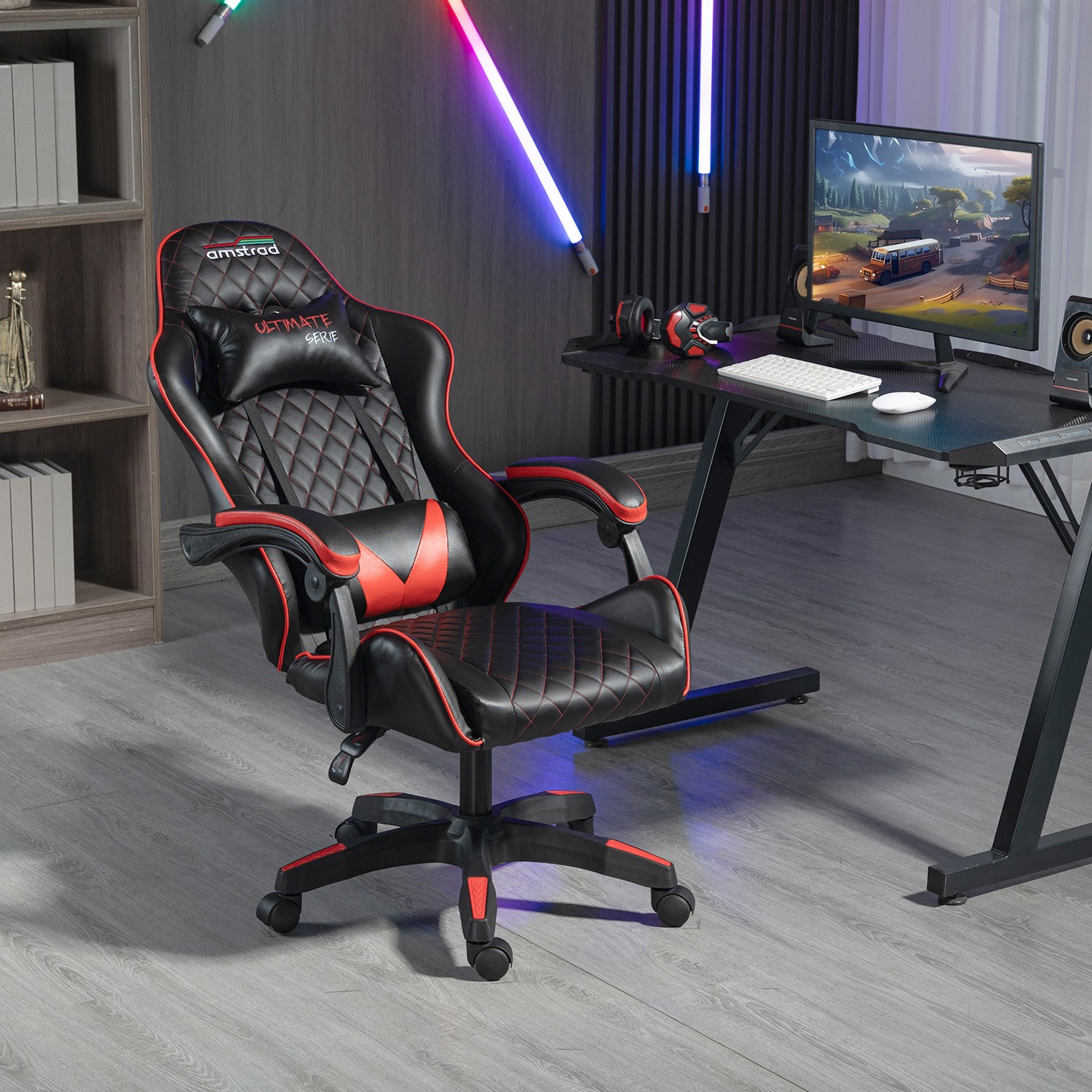 Amstrad ULTIMATE-BK-RUBY Fauteuil / Chaise de bureau Gamer coloris noir & rouge - coussin lombaire & appu