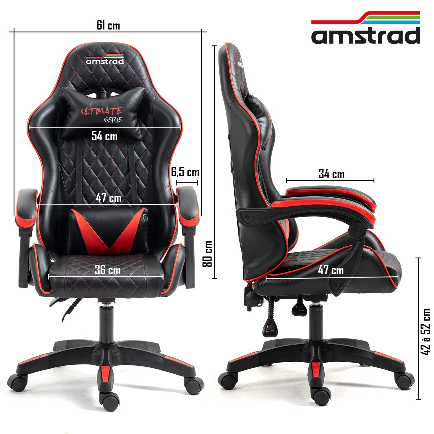 | Libellé | Amstrad ULTIMATE-BK-RUBY Fauteuil / Chaise de bureau Gamer coloris noir & rouge - coussin lombaire & appuie tête |