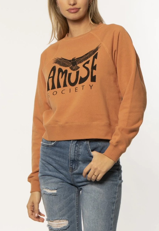 Adoptez un look affirmé et tendance avec le sweat camel Amuse Society, proposé à prix doux en déstockage.