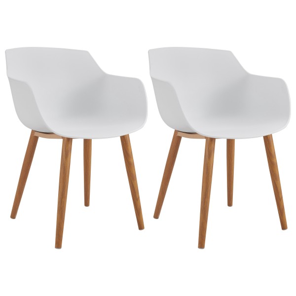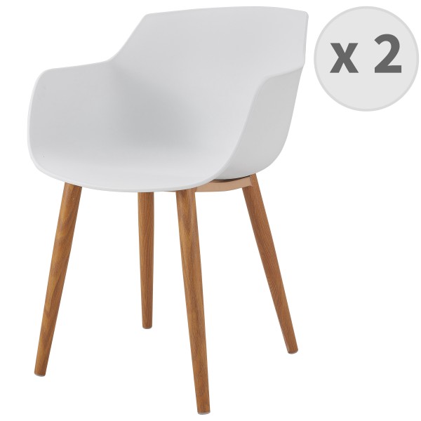 ANDREA - Chaise scandinave blanc pied métal effet bois (x2)