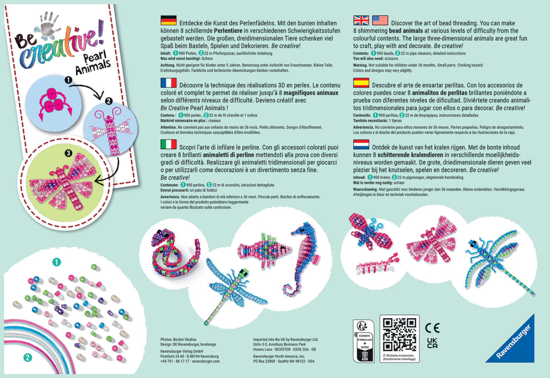 | Plus produit | ANIMAUX EN PERLES Ce coffret complet permet de réaliser de beaux animaux en 3D en enfilant de magnifiques perles colorées roses, bleues, violettes ou encore vertes. Idéal à accrocher à un porte-clés, à un sac et plus encore ! JUSQUÀ 8 REALISATIONS Ce coffret offre la possibilité de créer jusqu\'à 8 animaux différents dont des papillons, poissons, libellules, serpents ou chenilles grâce à un guide conseil très détaillé pour aider l\'enfant dans les réalisations. FAVORISE CONCENTRATION ET AUTONOMIE Loin des écrans, cette activité ludique allie dextérité et précision pour développer l\'habilité manuelle et la concentration des enfants. Idéal pour les moments en famille ou par temps de pluie. DEVELOPPE TA CREATIVITE Be Creative regroupe un ensemble d\'activités artistiques et créatives dont du string art (18235), de la mosaique (18446) ou encore du quilling et des origamis (18236). COFFRET COMPLET : 900 perles de 7 couleurs différentes, 22 m de fil chenille dans 4 couleurs différentes et 1 guide-conseil. |