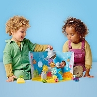 | Plus produit | Explorez le monde sous-marin aux côtés de baleines, dun poisson tropical et dune adorable tortue avec ce set polyvalent sur la vie sous-marine, accompagné dun tapis de jeu en 3 dimensions représentant le fond de locéan. |