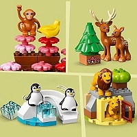 | La boîte contient | System.Collections.Generic.List`1[System.String];• Le monde naturel dans un set – Le set Animaux sauvages du monde LEGO® DUPLO® (10975) permet aux enfants d’âge préscolaire de découvrir avec passion la faune sauvage et son environnement naturel • 22 animaux – Rencontrez des pandas en Asie, des lions en Afrique, des daims en Europe, un alpaga en Amérique du Sud, un ours en Amérique du Nord, un koala en Australie, des manchots en Antarctique... et bien plus encore • Les amis des animaux apprennent en jouant – Ce jeu d’éveil et de construction sur la faune du monde propose de nombreux animaux et environnements qui invitent les enfants à apprendre et à améliorer de nombreuses compétences • Un cadeau éducatif – Cadeau d’anniversaire, de fêtes ou juste pour faire plaisir., ce jouet offre des possibilités de jeu infinies aux tout-petits. Stimulant et amusant, il est également riche en enseignements pour les enfants de 2 ans et plus • Grands jeux pour les petits – Le tapis de jeu mesure plus de 99 cm de large et 50 cm de profondeur. La partie européenne mesure plus de 25 cm de haut, 20 cm de large et 17 cm de profondeur • Apprendre en s’amusant – Avec leur grande variété de couleurs, de personnages et de détails, les sets LEGO® DUPLO® sont conçus pour faire naître des histoires passionnantes ; un GRAND départ dans la vie pour les petits apprenants • Qualité constante – Les éléments LEGO® DUPLO® sont conformes aux normes industrielles les plus élevées. Ils sont faciles à saisir, assembler et séparer par les petites mains, et cela depuis 1969 • Sécurité assurée – Les briques et les pièces LEGO® DUPLO® sont soumises à des tests de chute, de chaleur, d’écrasement et de torsion, puis analysées afin de s’assurer qu’elles sont conformes aux normes de sécurité les plus strictes |
