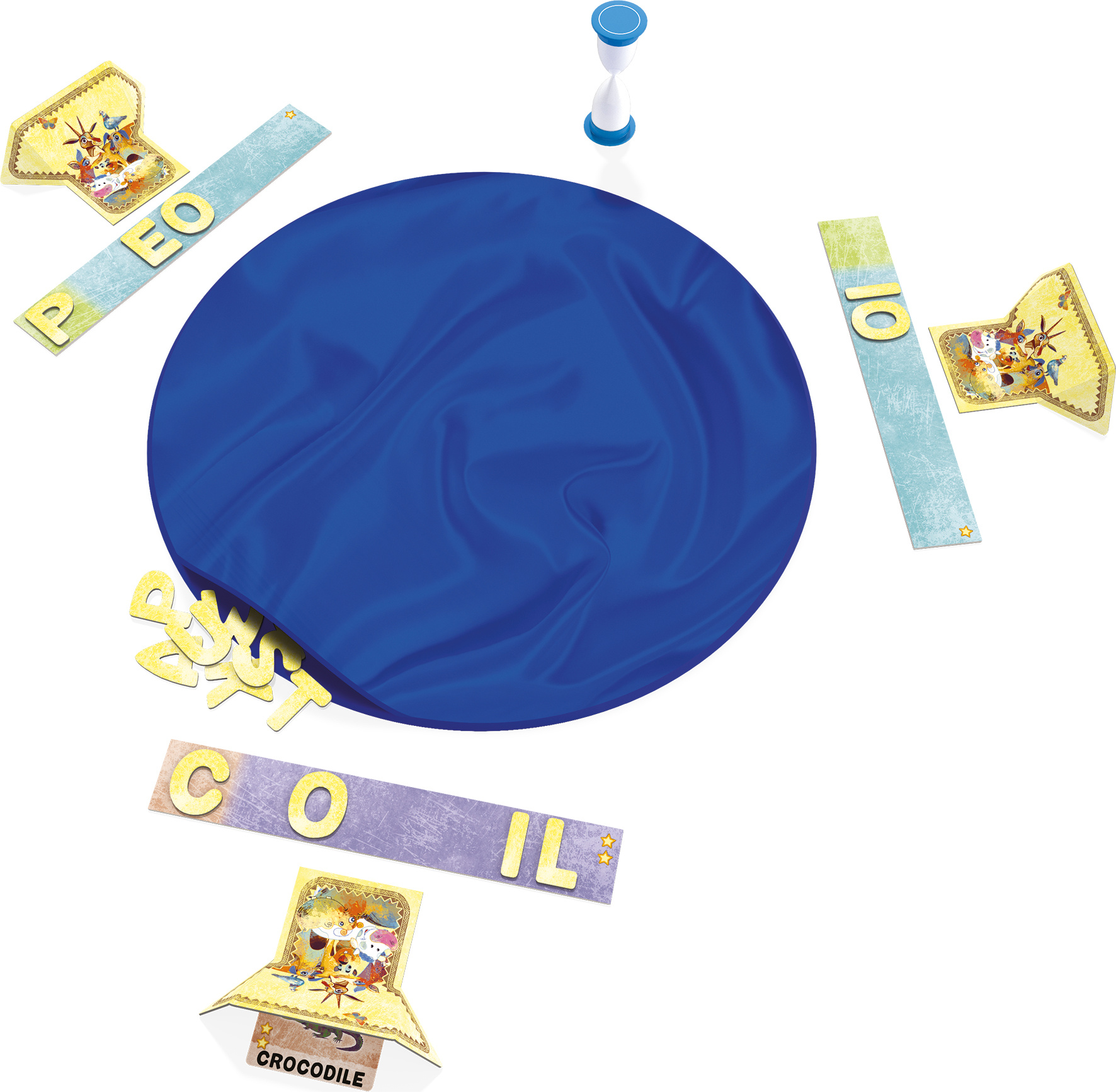 | La boîte contient | Contenu 82 lettres en carton 6 plateaux individuels 60 cartes Animal 6 écrans à cartes 1 sac en tissu 1 sablier de 2 minutes 1 livret de règles |