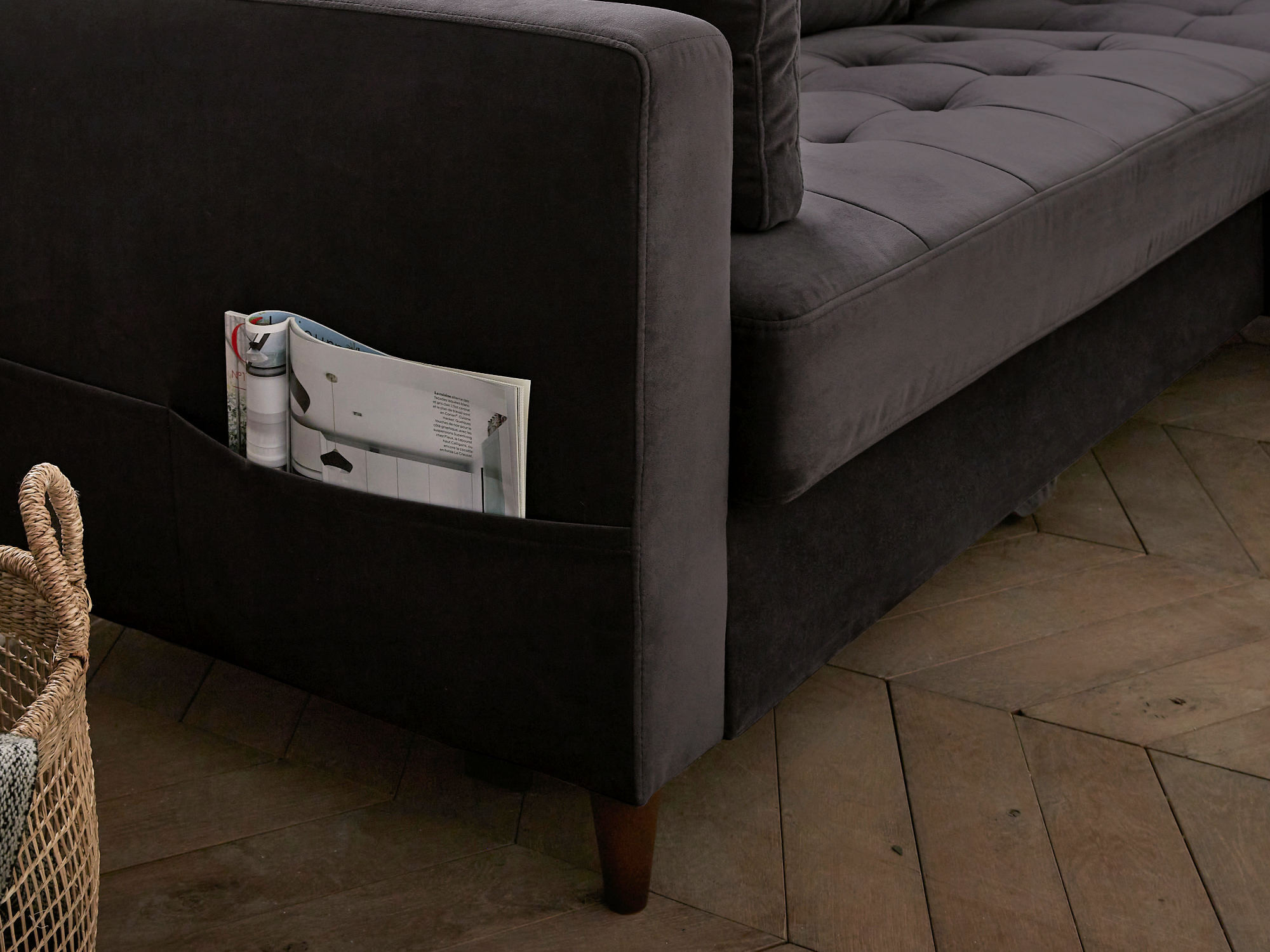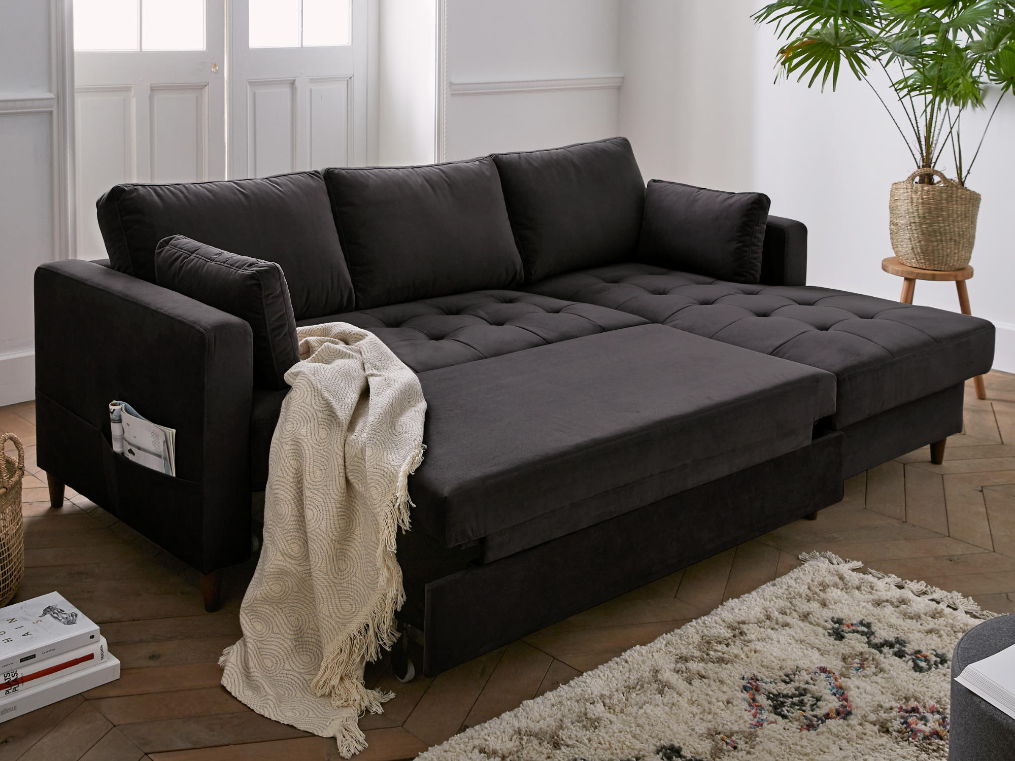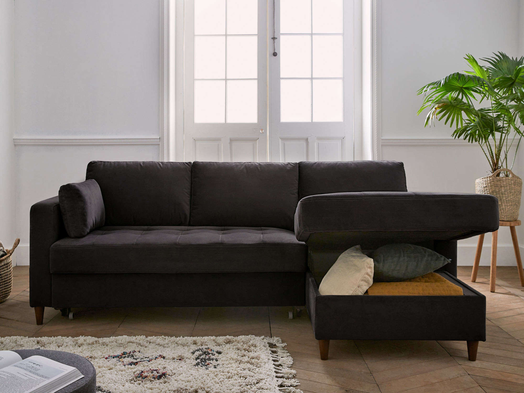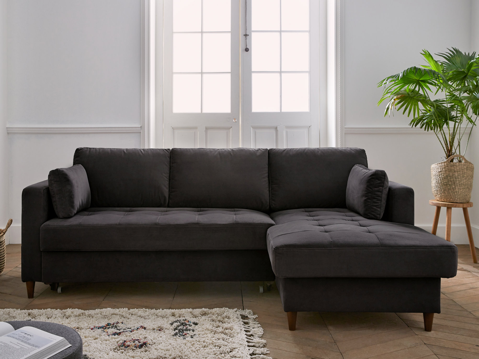 Libellé Anna - canapé d'angle droit - 4 places - convertible avec coffre - en velours