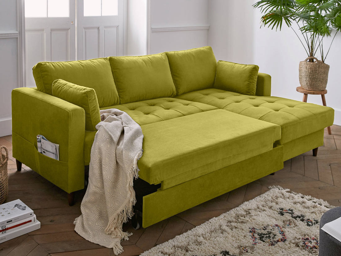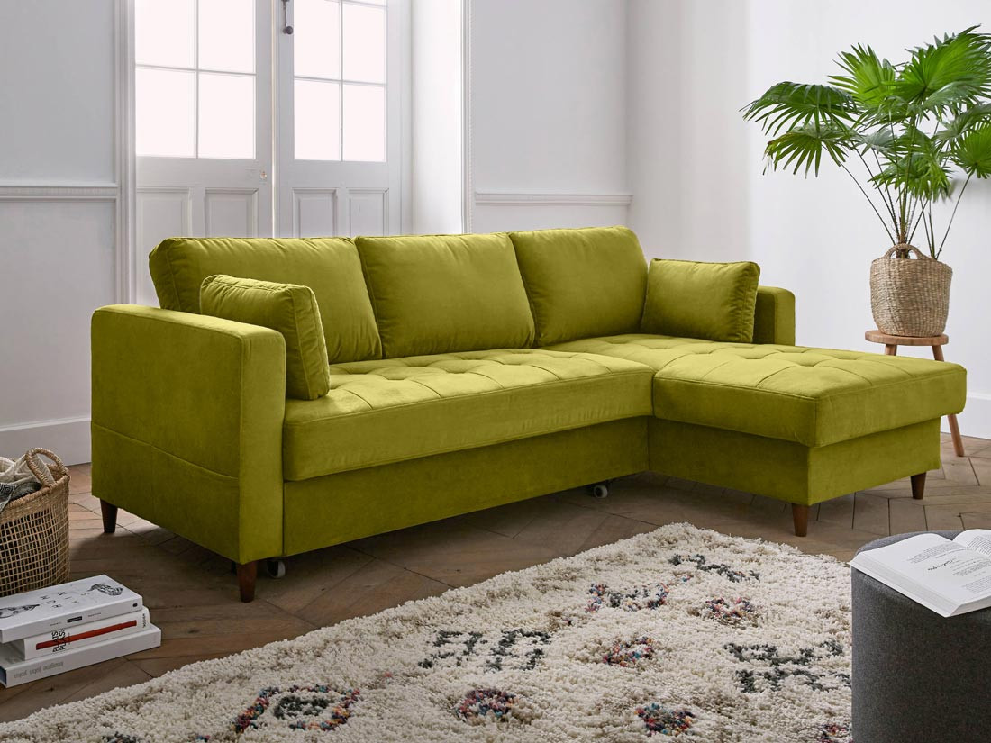 | Libellé | Anna - canapé d'angle droit - 4 places - convertible avec coffre - en velours |