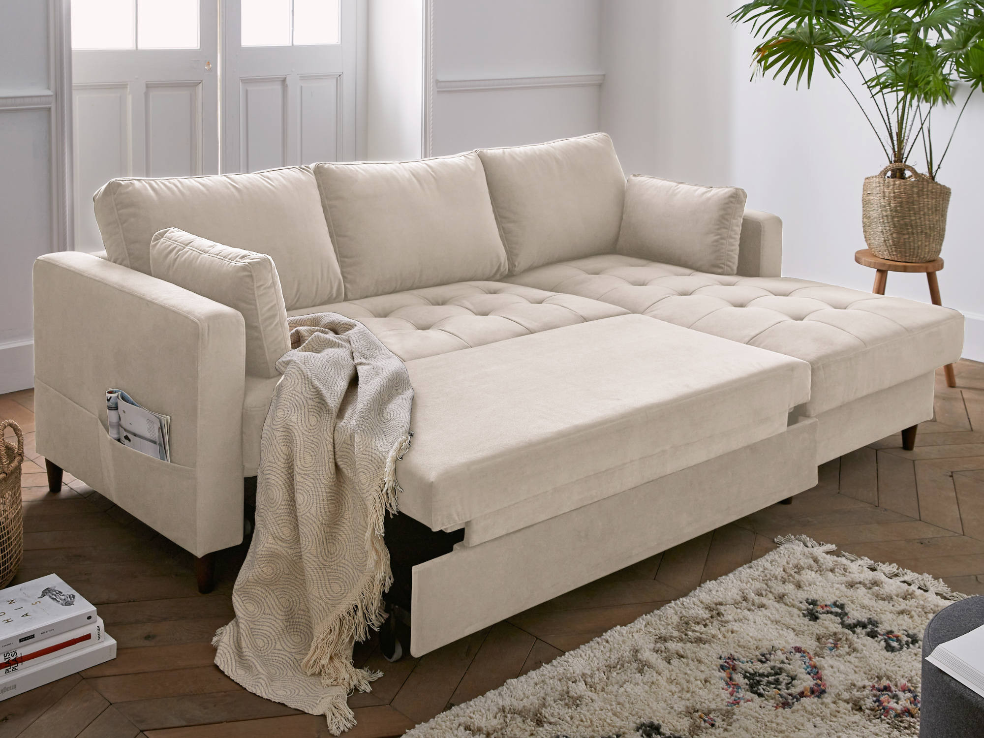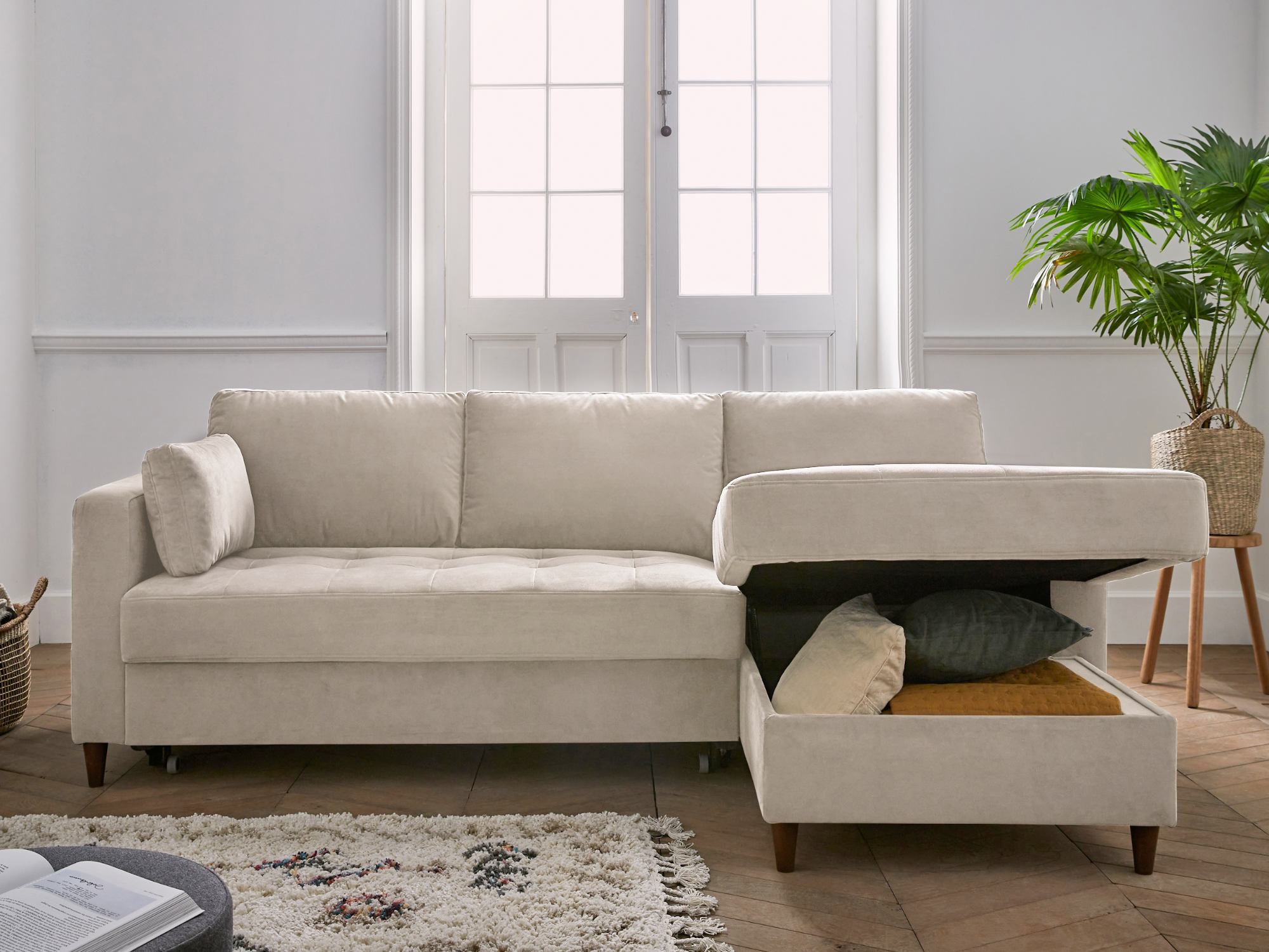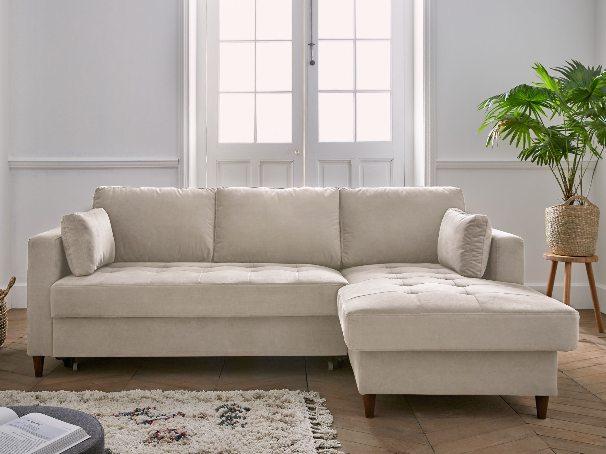 | Libellé | Anna - canapé d'angle droit - 4 places - convertible avec coffre - en velours |