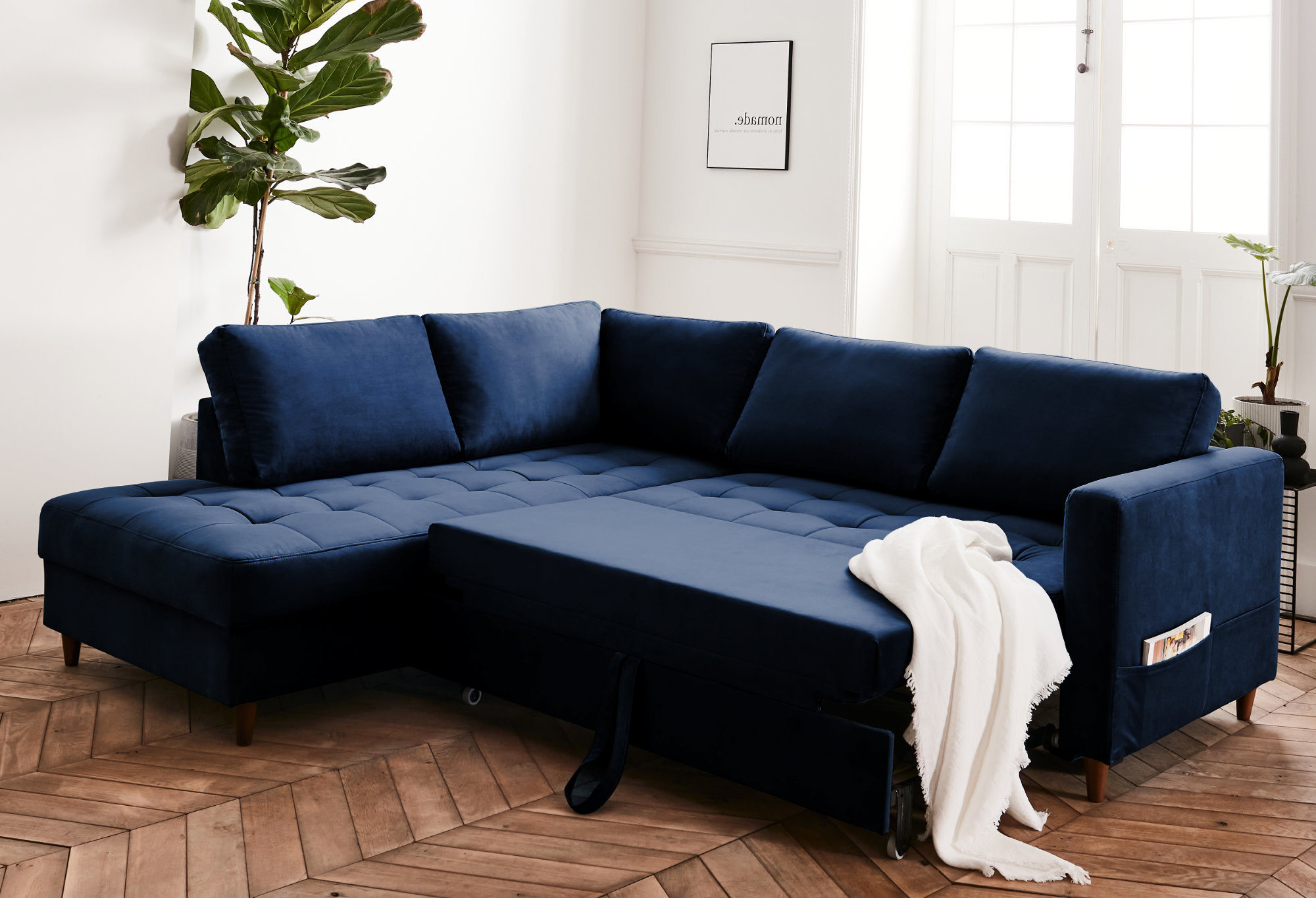 Anna - canapé d'angle gauche - 5 places - convertible - en velours