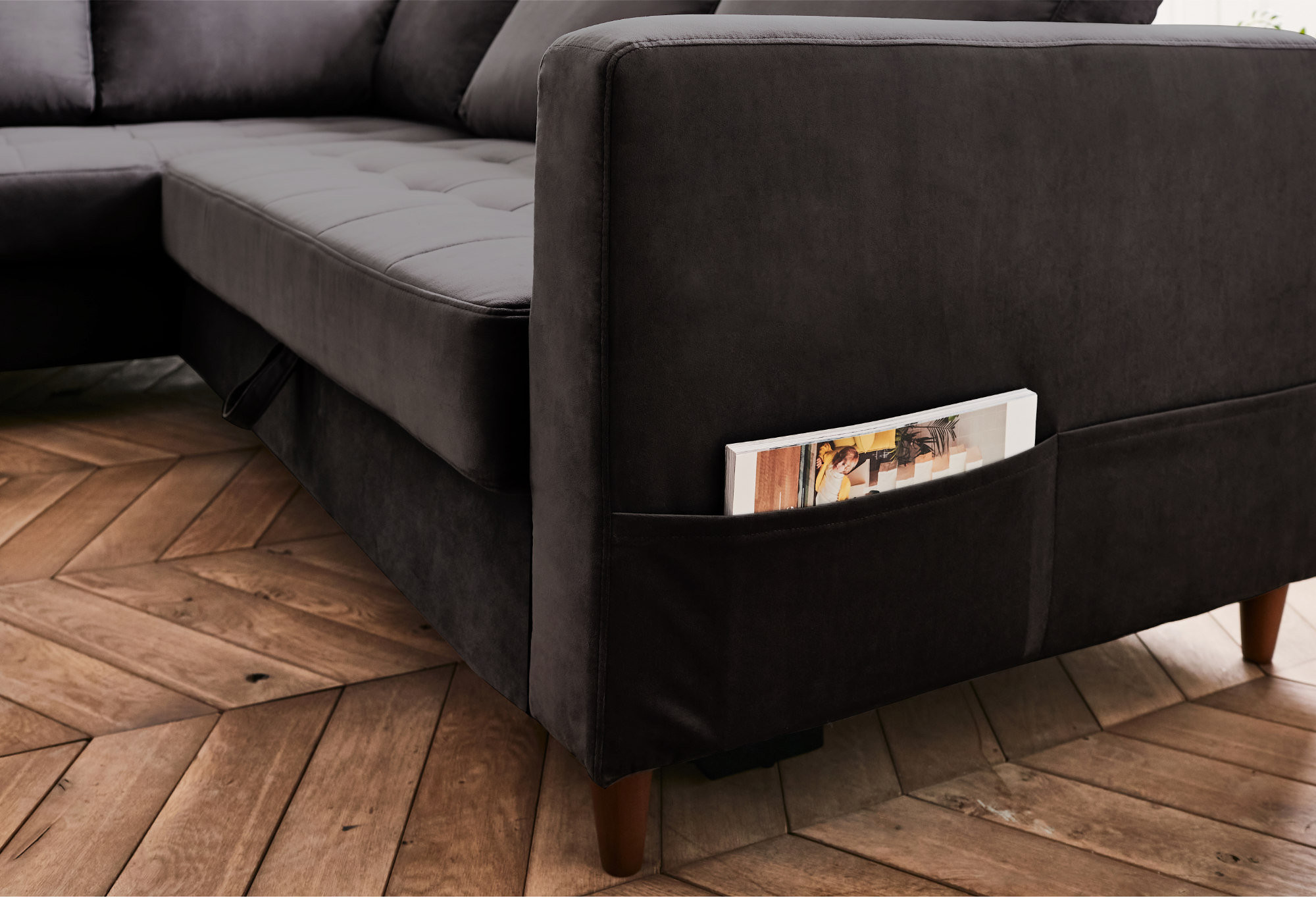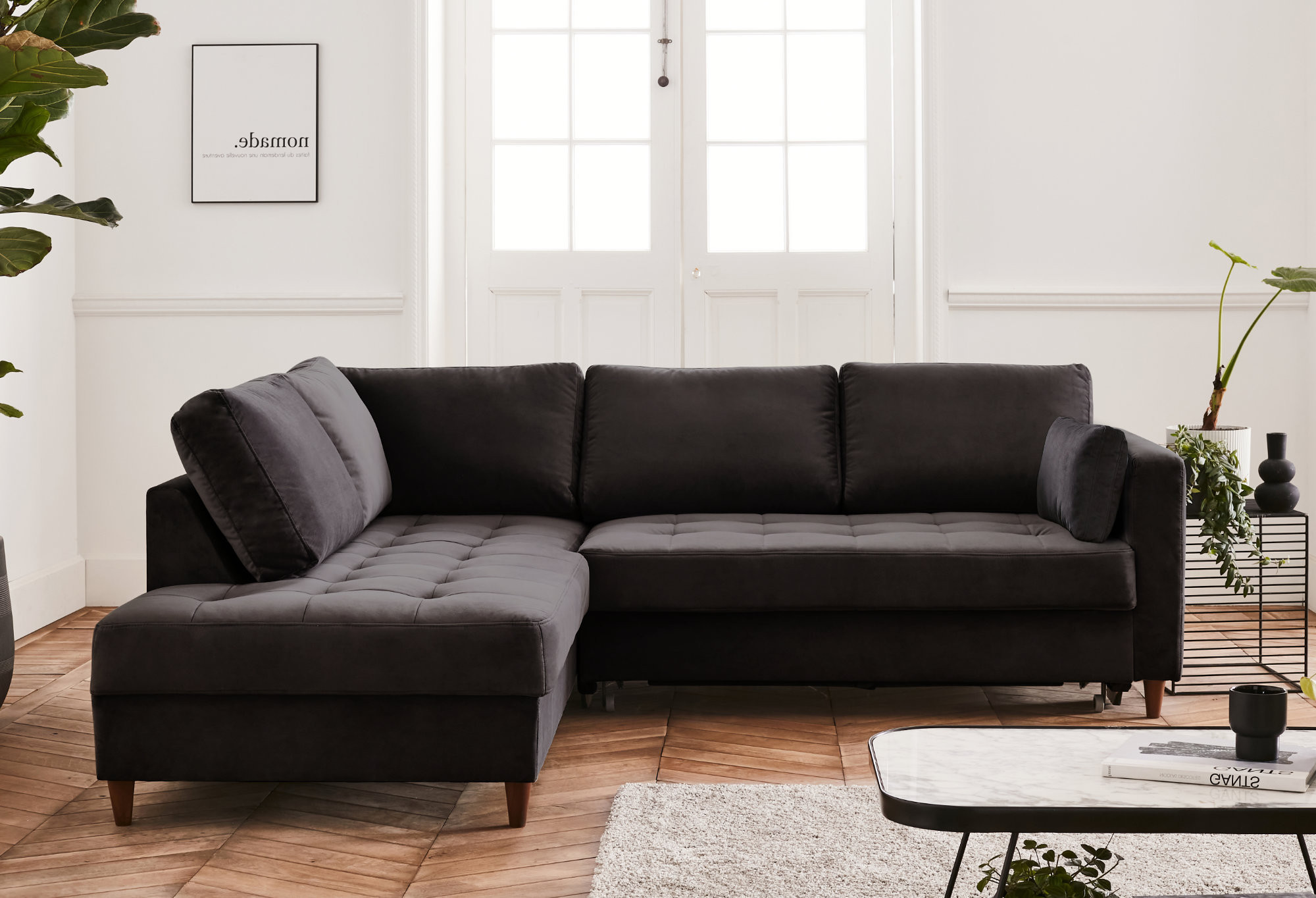 Un canapé d’angle en velours
