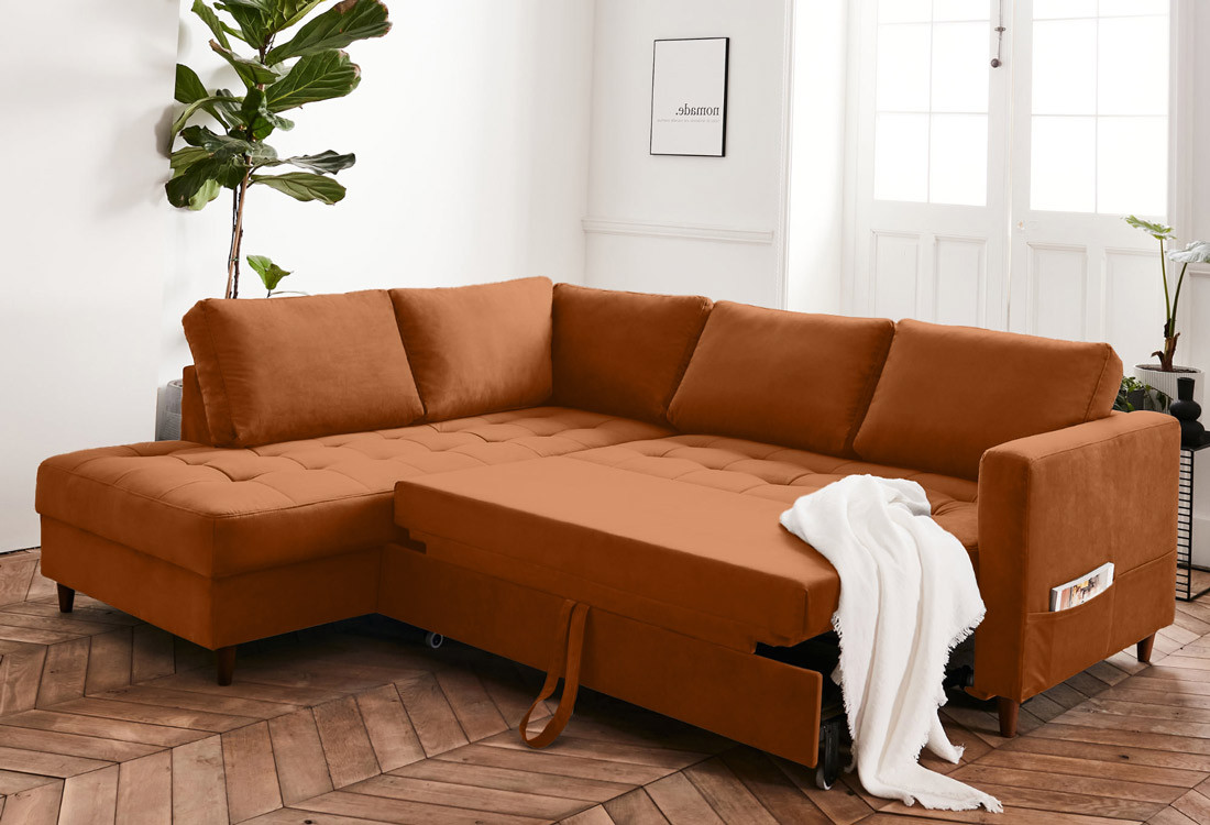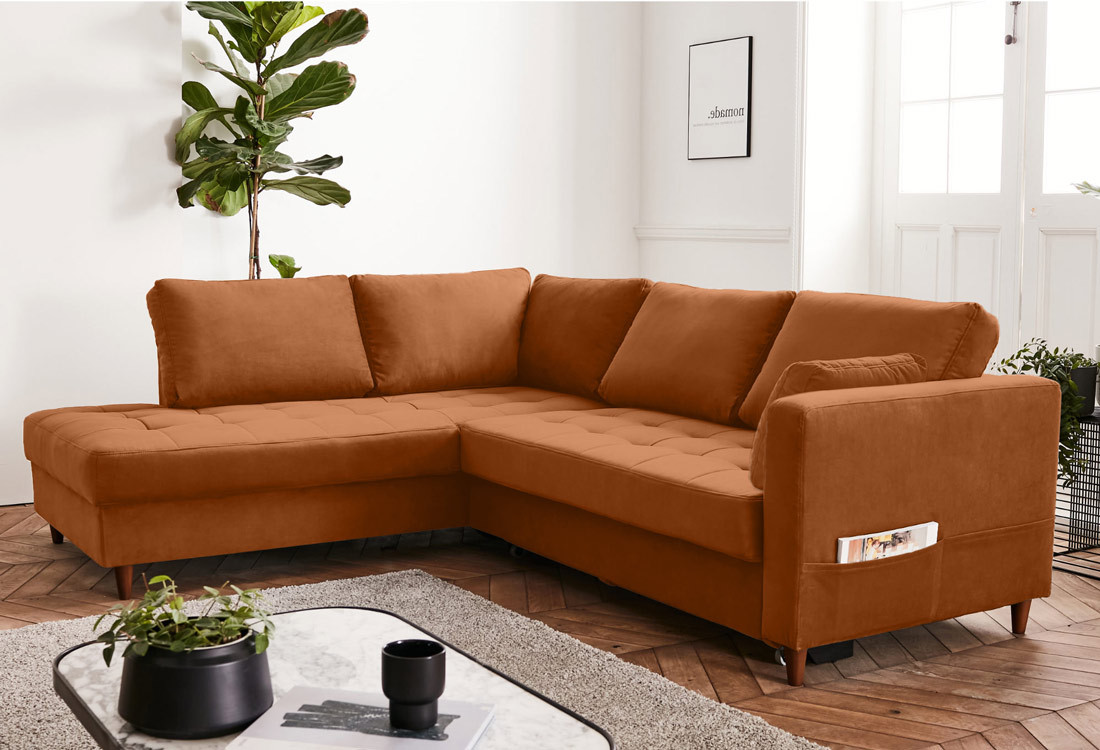 Anna - canapé d'angle gauche - 5 places - convertible - en velours