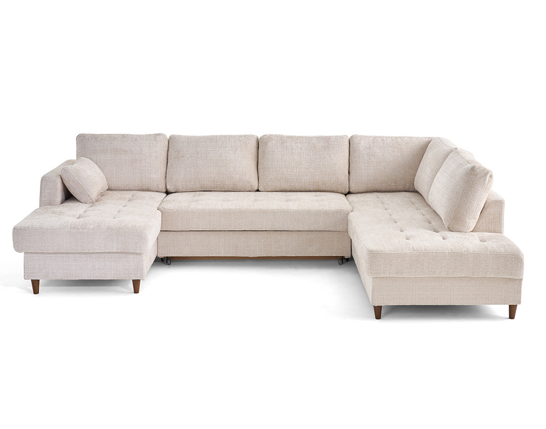 | Libellé | Anna - canapé panoramique d'angle droit 7 places convertible avec coffre en velours texturé |