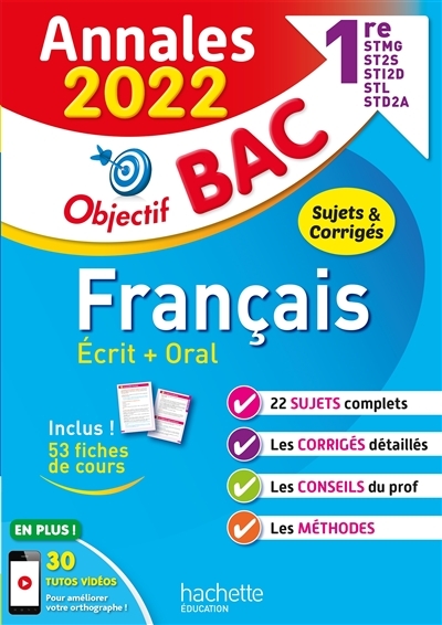 | Libellé | Annales BAC 2022 - Français 1res STMG - STI2D - STome 2S - STL - STD2A - STHR (Broché) |