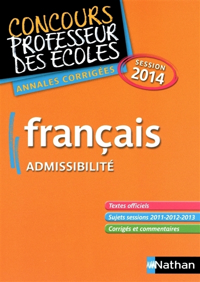 | Titre de l'œuvre | ANNALES CORRIGEES FRANCAIS ADMISSIBILITE CRPE SESSION 2014 |