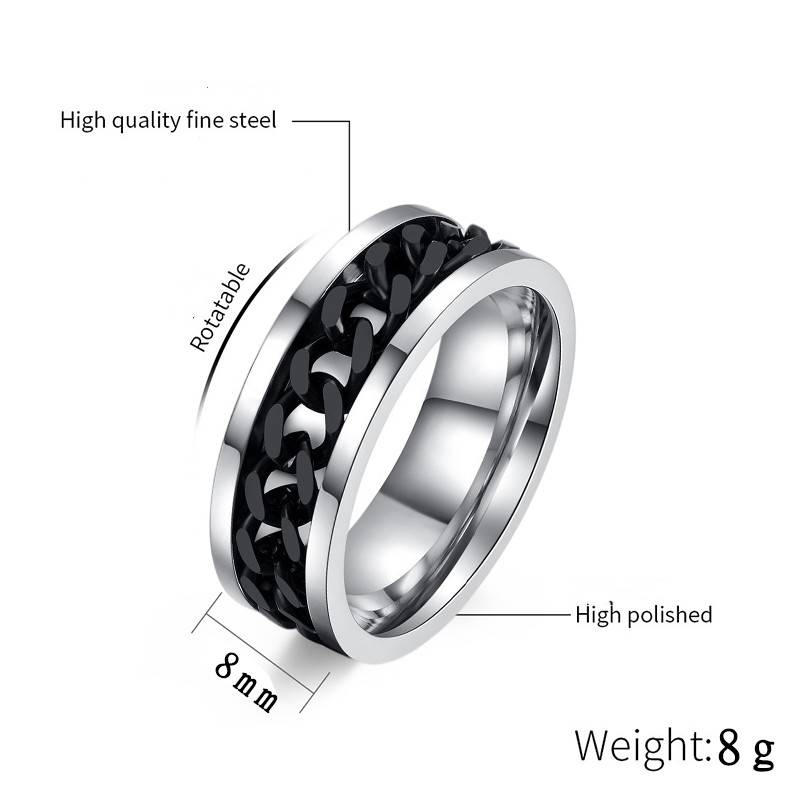 Anneau multifonctionnel avec chaîne rotative : La chaîne de l'anneau peut être tournée pour soulager le stress et l'anxiété, ce qui en fait un outil de stress discret.