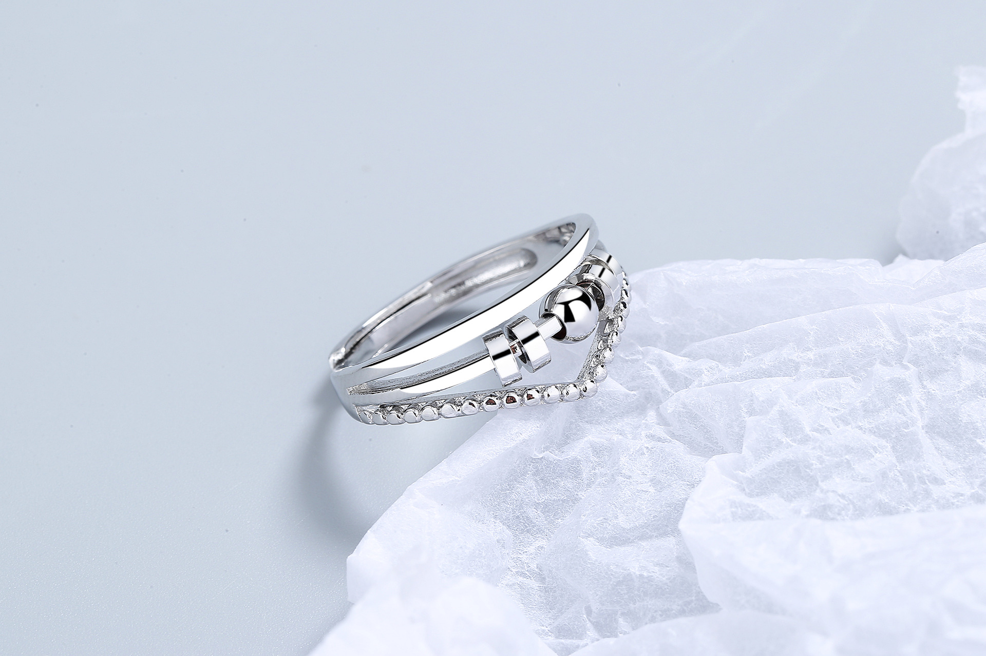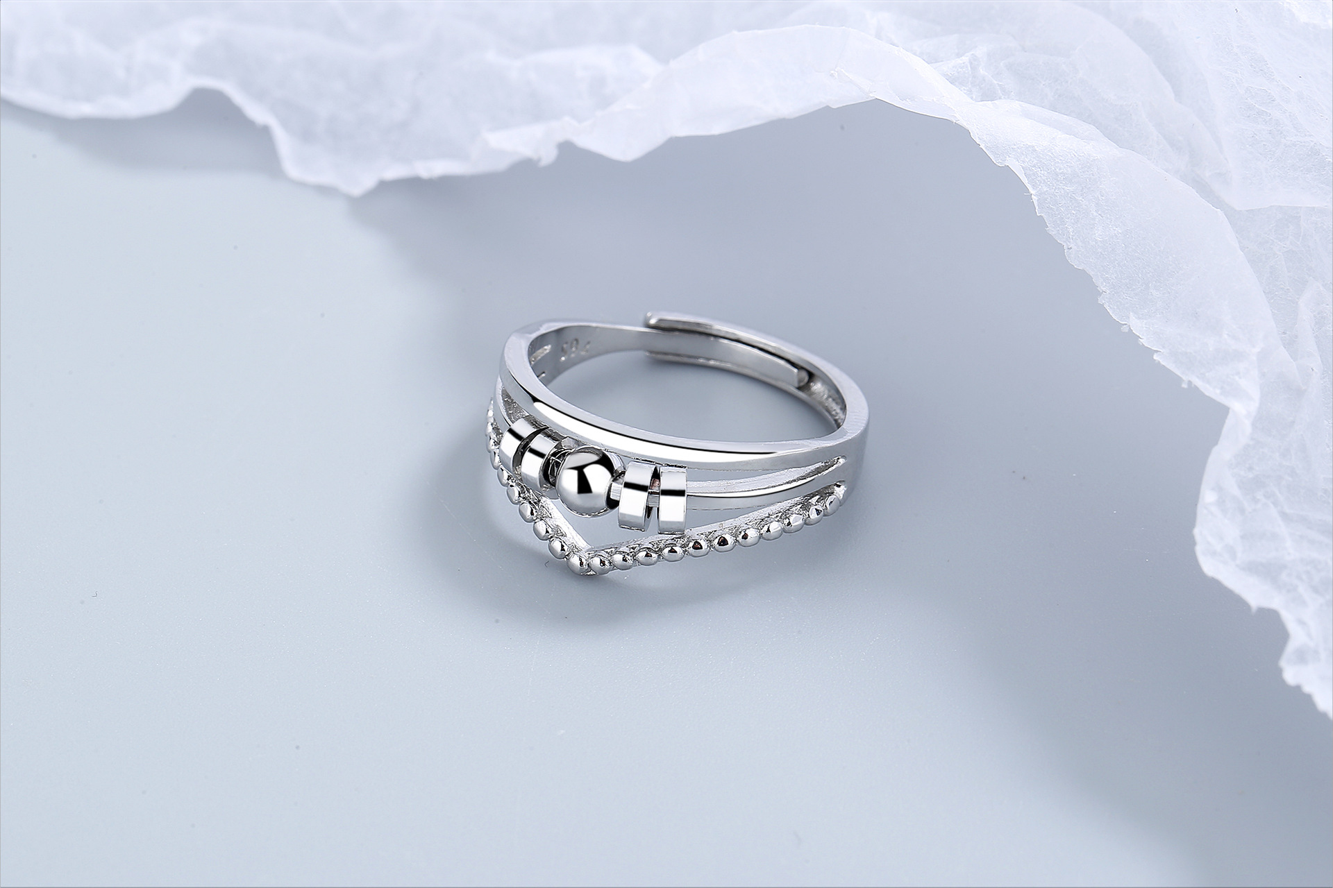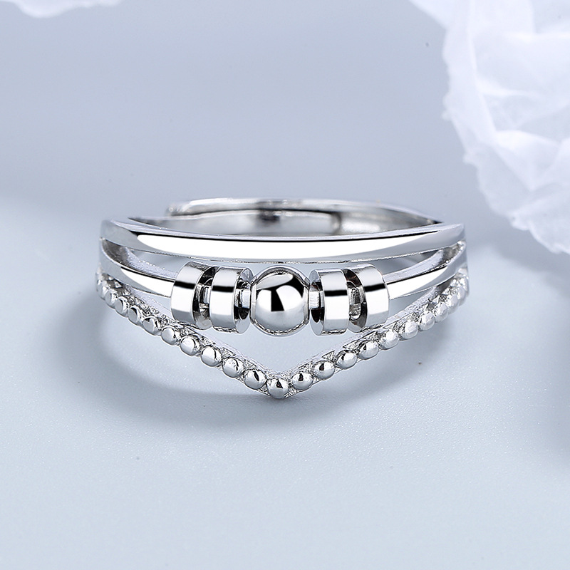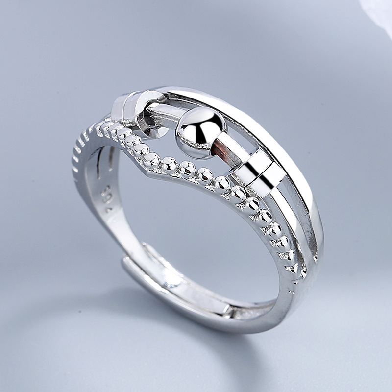 Anneau anti-stress réglable avec perles rotatives Silver