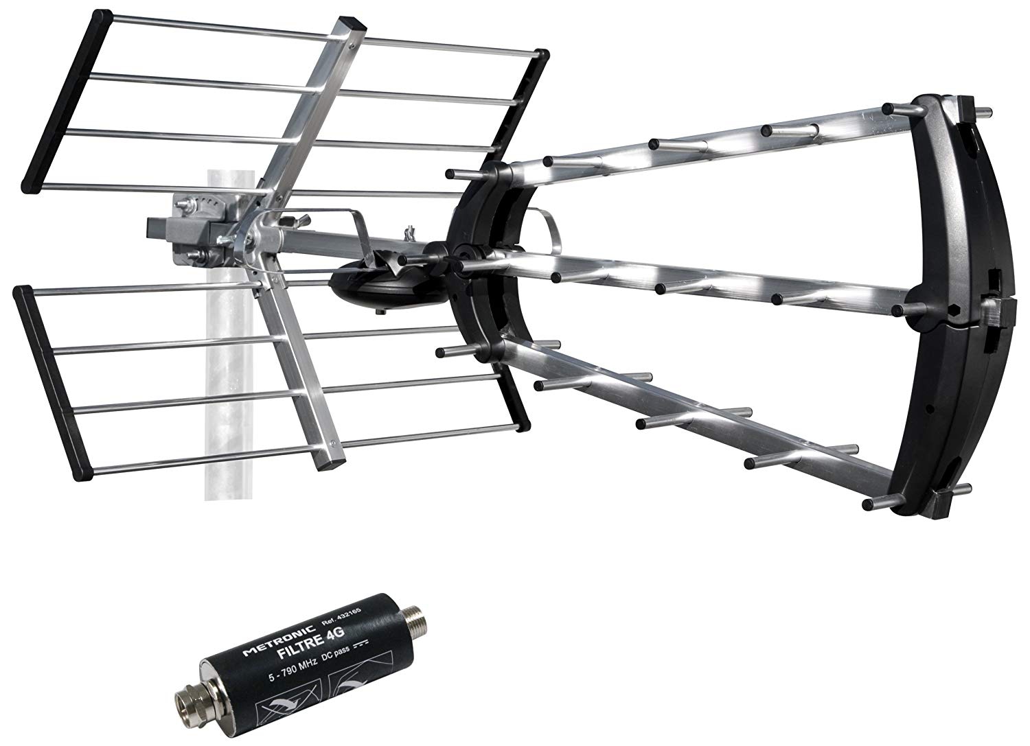 | Libellé | Antenne tv extérieure Metronic Uhf trinappe 26 db gris métallisé + filtre 4g |