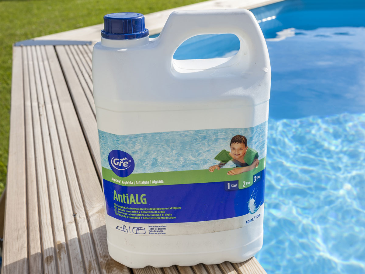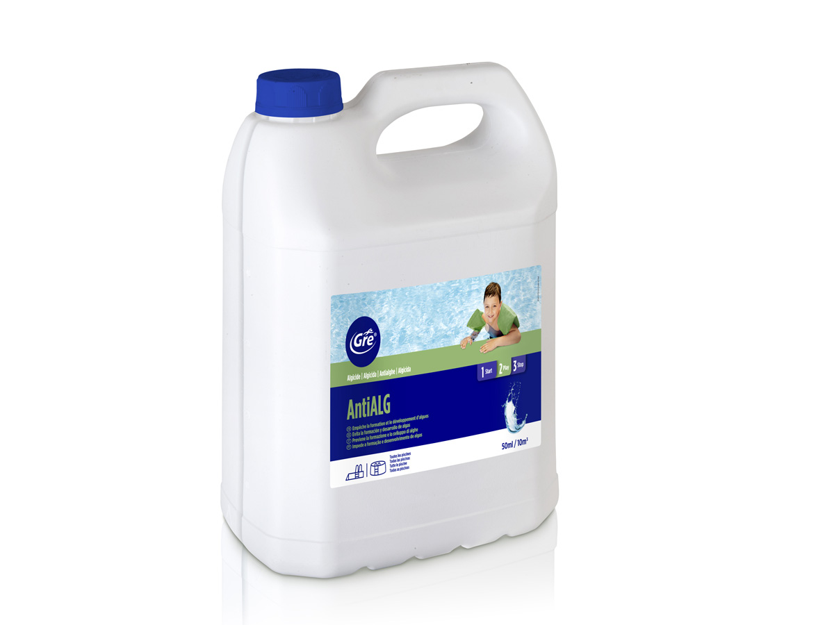 Anti-algues 5 litres Format liquide Permet d'éliminer toutes les algues Quantité contient: 5 litres Mode d'emploi: Traitement de prévention contre les algues. Dose initiale: ajouter 1 litre d'anti-algues pour chaque 100 m³ d'eau Doses d'entretien: ajouter 0,50 litre d'ANTI-ALGUES tous les 100 m³ d'eau une fois par semaine La dose initiale devra être à nouveau remise jusqu'à obtenir une eau transparente. Ces doses sont données à titre indicatif et peuvent être modifiées en fonction des caractéristiques propres à chaque piscine climat etc. Caractéristiques techniques Conditionnement:Liquide Couleur:Blanc Marque:GRE Matière(s):NC Quantité:5 L Type de produit:Anti-algues