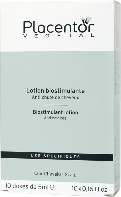 Placentor Végétal Lotion Biostimulante Anti-Chute de Cheveux 10 Doses x 5 ml est un véritable concentré actif qui prévient et atténue la chute des cheveux. La Camomille d'Or agit en synergie avec le Placenta Végétal pour revitaliser et régénérer le cuir chevelu. Les cheveux sont fortifiés et tonifiés. Elle s'utilise en cure d'entretien ou en cure d 'attaque anti-chute. Tolérance testée par des dermatologues. Fabriquée en France.