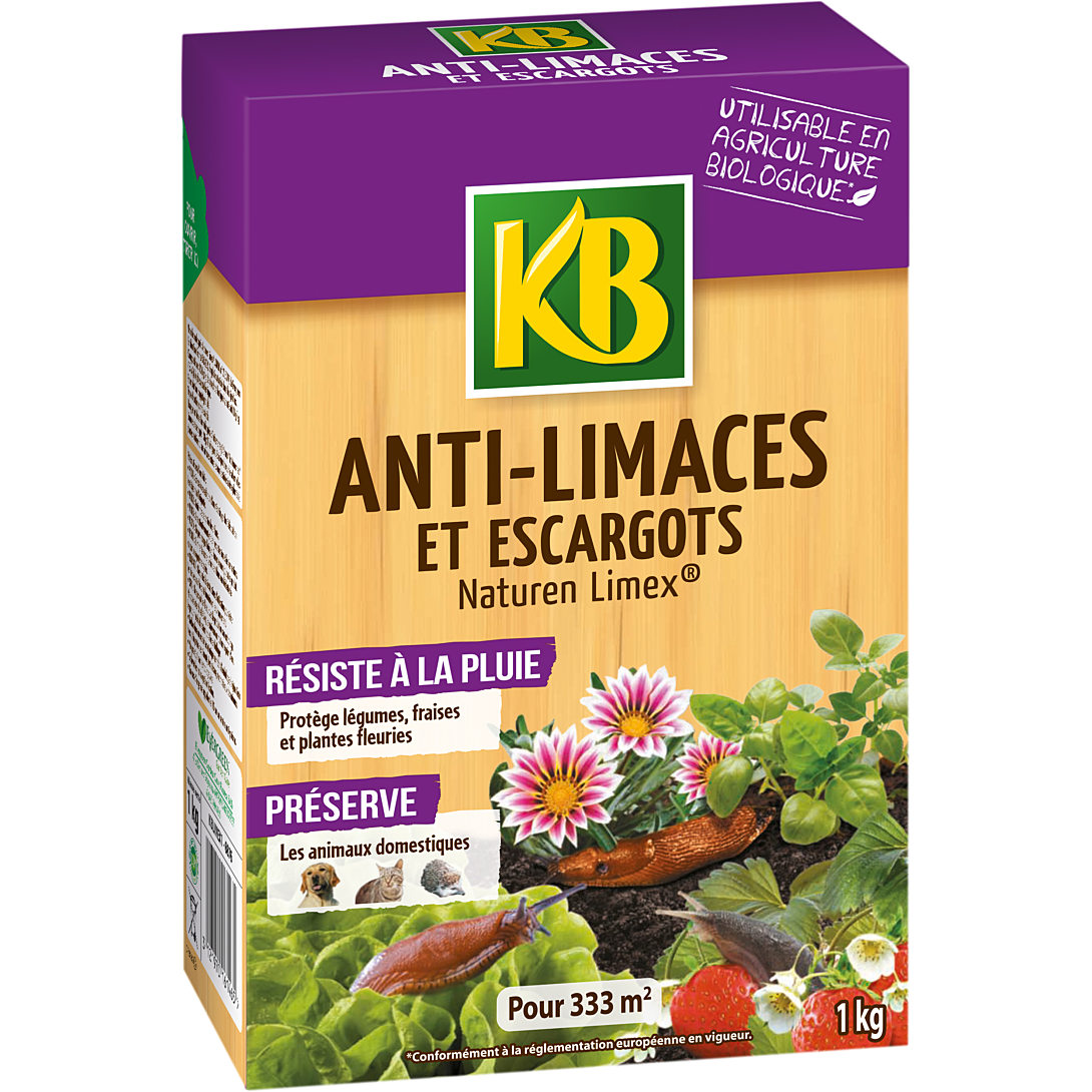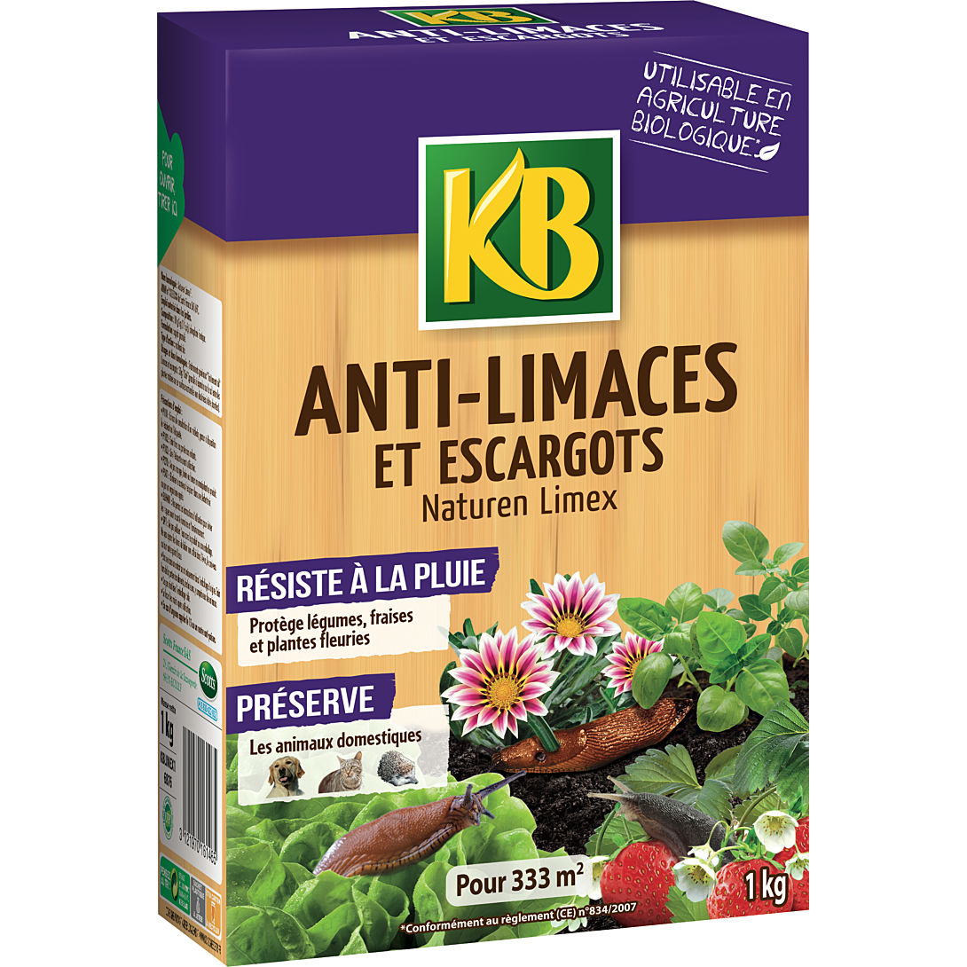 L'anti-limaces et Escargots de KB UAB* elimine efficacement les limaces les plus répandues (rouges, noires, grises, jaunes), les escargots et les loches. Il protège toutes les variétés de fruits, légumes et fleurs cultivées en plein terre ou en pot (fraises, salades, choux, brocolis ... ). Les granulés attirent les nuisibles qui vont l'ingérer puis cesser de se nourrir. Contrairement à l'action d'autres produits, les limaces ne bavent pas et se retirent dans leur abri pour mourir. Les limaces mortes ne peuvent donc pas être mangées par les animaux domestiques et les hérissons.