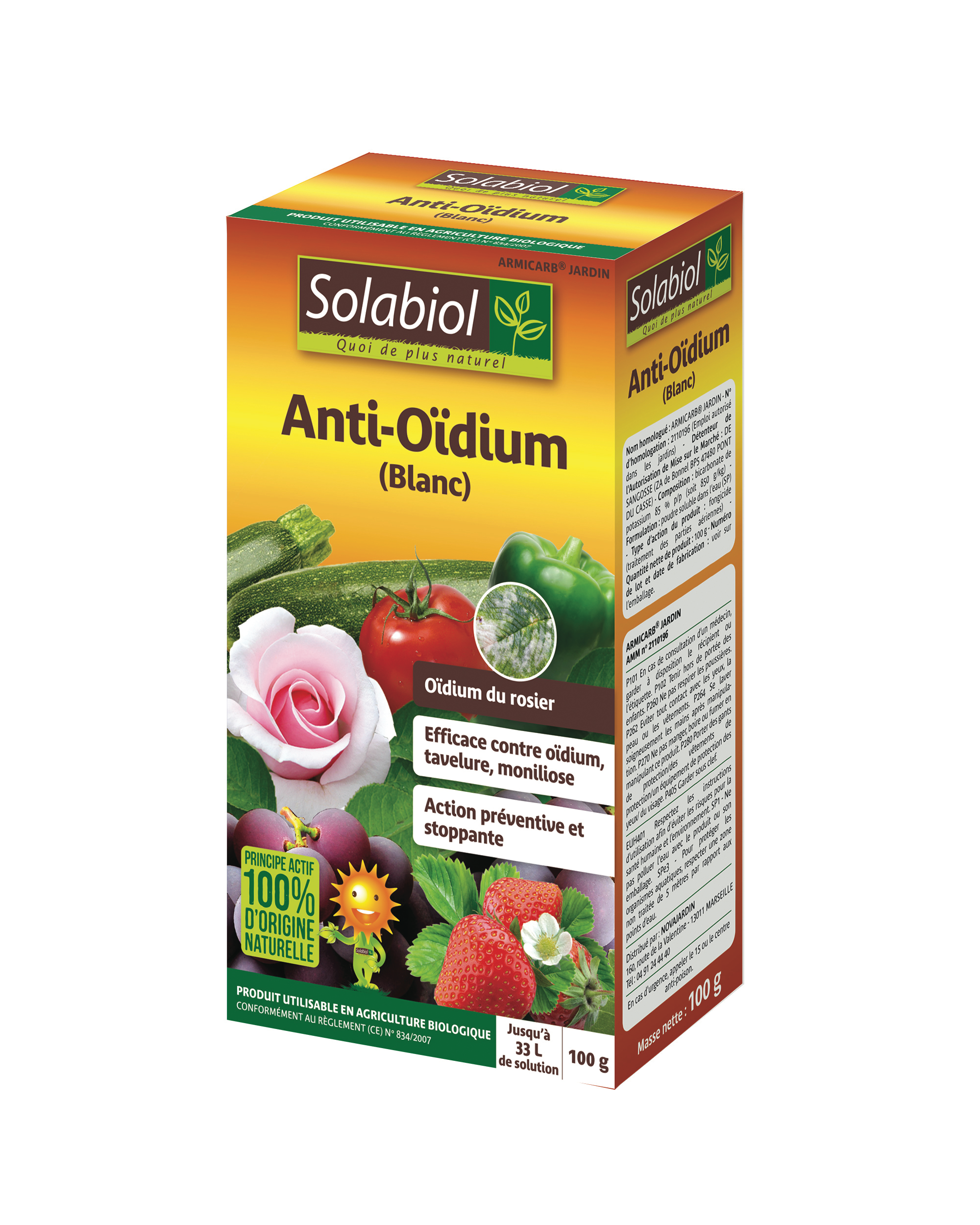 L’Anti-Oïdium Solabiol agit par contact et possède une action multisite. Il est à appliquer de manière préventive ou curative. Polyvalent, il peut s’utiliser sur les légumes, les arbres fruitiers et les petits fruits ainsi que sur les plantes ornementales pour lutter contre oïdium, tavelure et pourriture grise. Son mode d’action résulte d’une combinaison de facteurs : modification du pH, de la pression osmotique et perturbation de l’équilibre ionique des cellules du pathogène qui lui confère une bonne efficacité. L'Anti-Oïdium Solabiol est très hygroscopique : une prise en masse est un phénomène naturel qui n’affecte en rien ses performances.