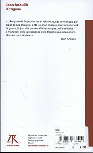 « L'Antigone de Sophocle, lue et relue et que je connaissais par coeur depuis toujours, a été un choc soudain pour moi pendant la guerre, le jour des petites affiches rouges. Je l'ai réécrite à ma façon, avec la résonance de la tragédie que nous étions alors en train de vivre. »