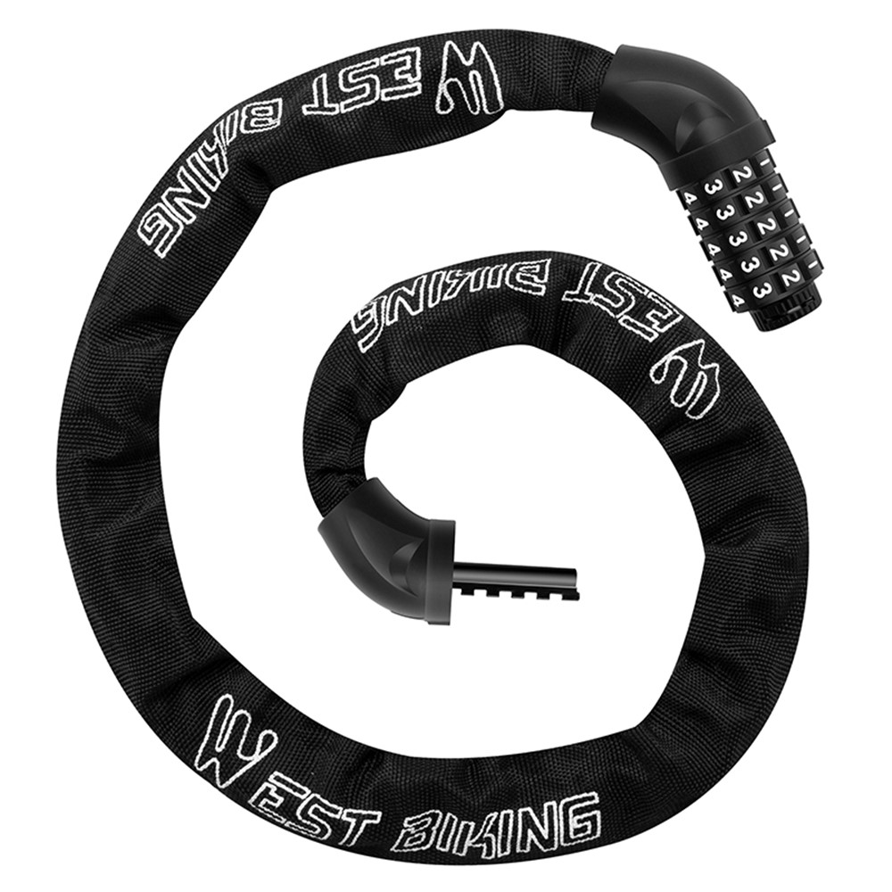WEST BIKING YP0705119 – Antivol Chaîne Vélo 100 cm à Code 5 Chiffres – Noir