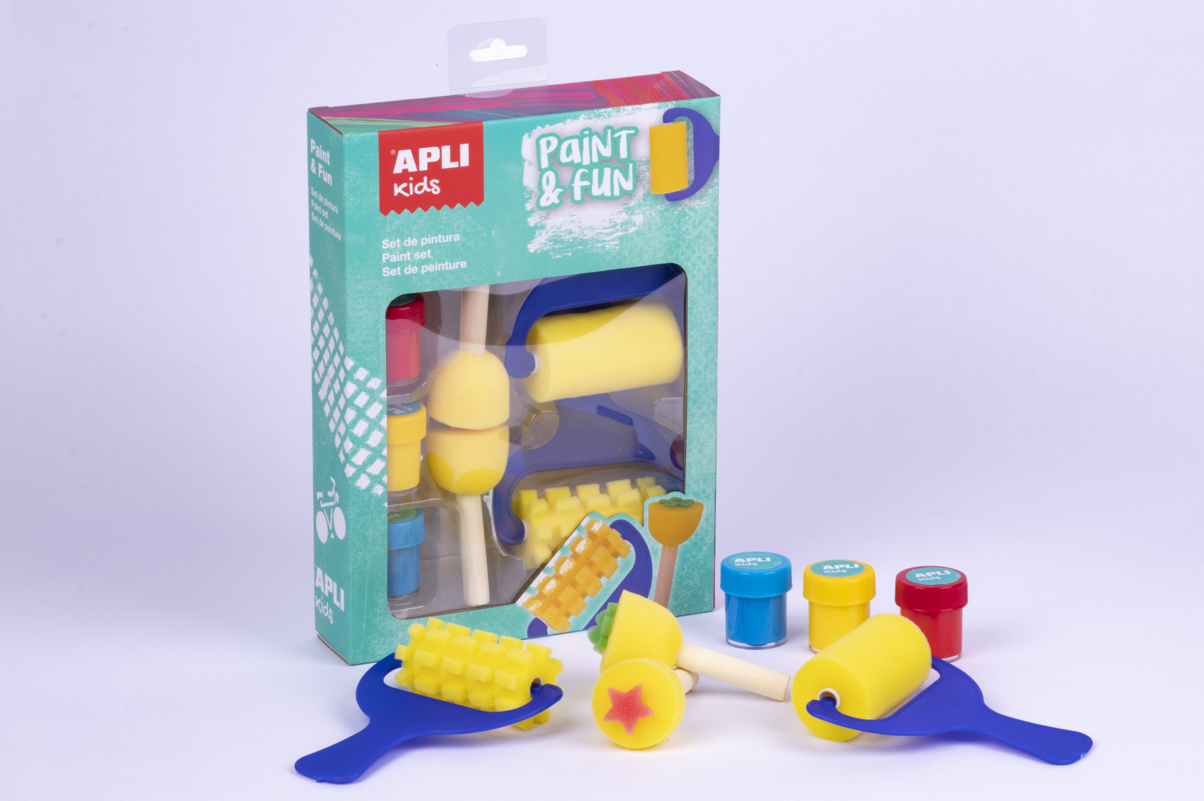 APLI Kids Paint & Fun. Type de produit: Kit de moulage/peinture pour enfants, Age recommandé (min): 3 an(s), Couleur du produit: Bleu, Rouge, Jaune. Type d'emballage: Boîte avec crochet