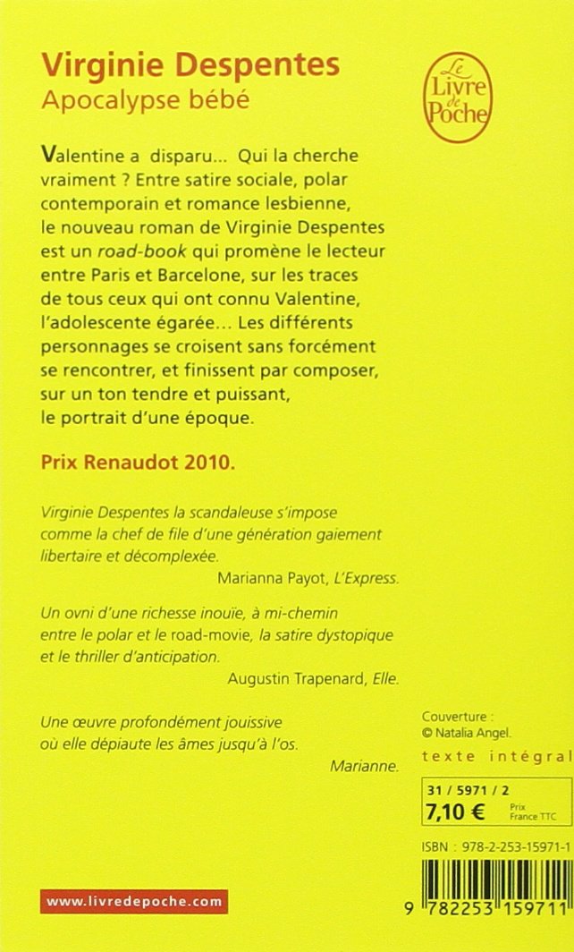 Valentine a disparu... Qui la cherche vraiment ? Entre satire sociale, polar contemporain et romance lesbienne, le nouveau roman de Virginie Despentes est un road-book qui promène le lecteur entre Paris et Barcelone, sur les traces de tous ceux qui ont connu Valentine, l'adolescente égarée... Les différents personnages se croisent sans forcément se rencontrer, et finissent par composer, sur un ton tendre et puissant, le portrait d'une époque.