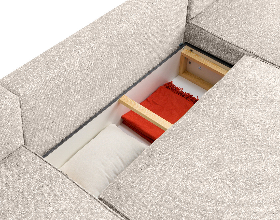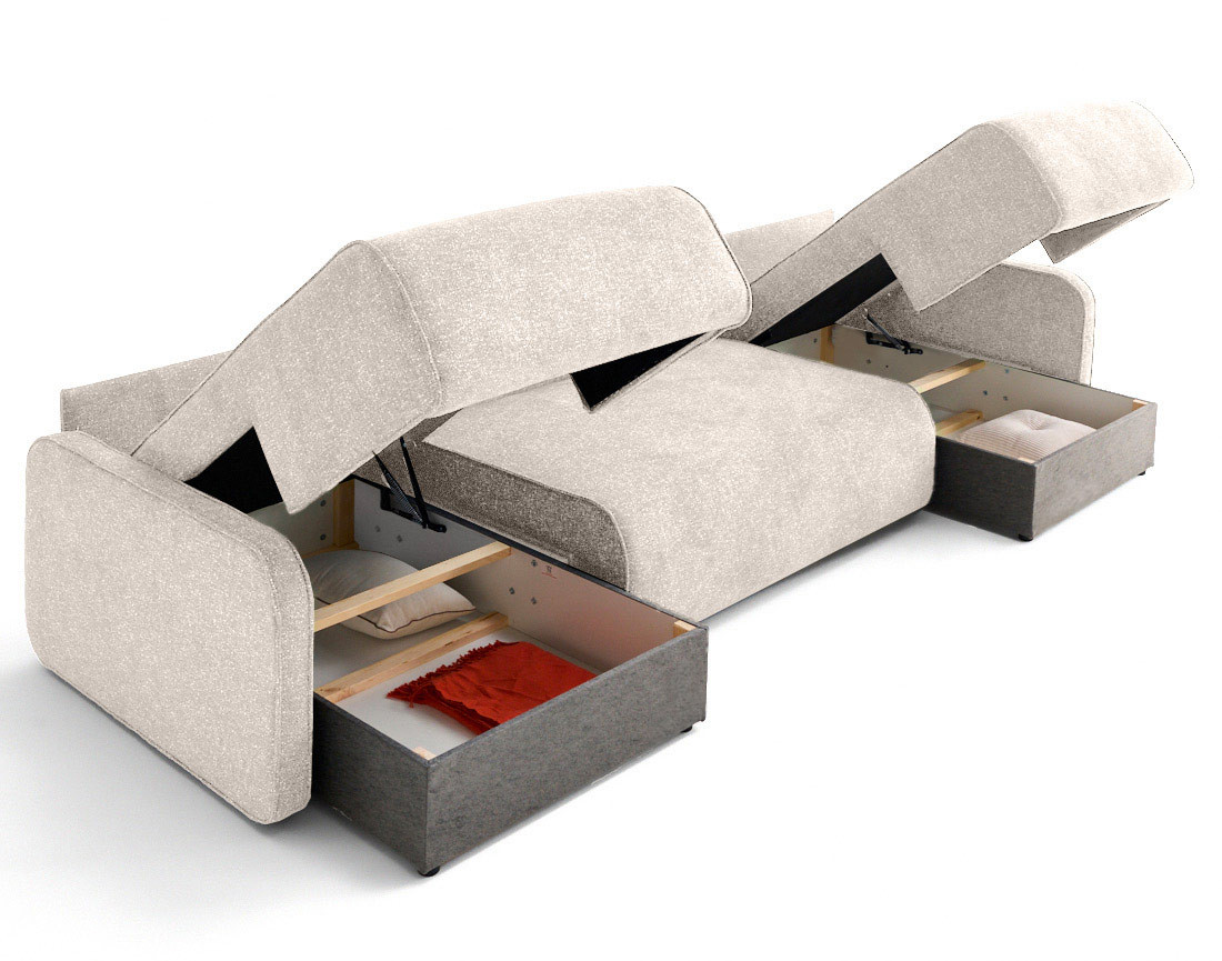 Apolline - canapé panoramique en U 7 places convertible avec coffres en tissu moucheté
