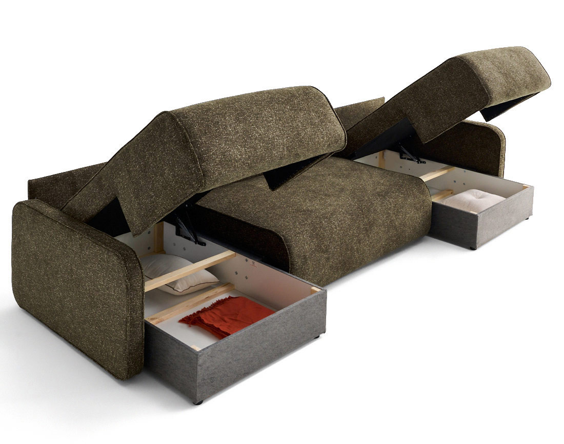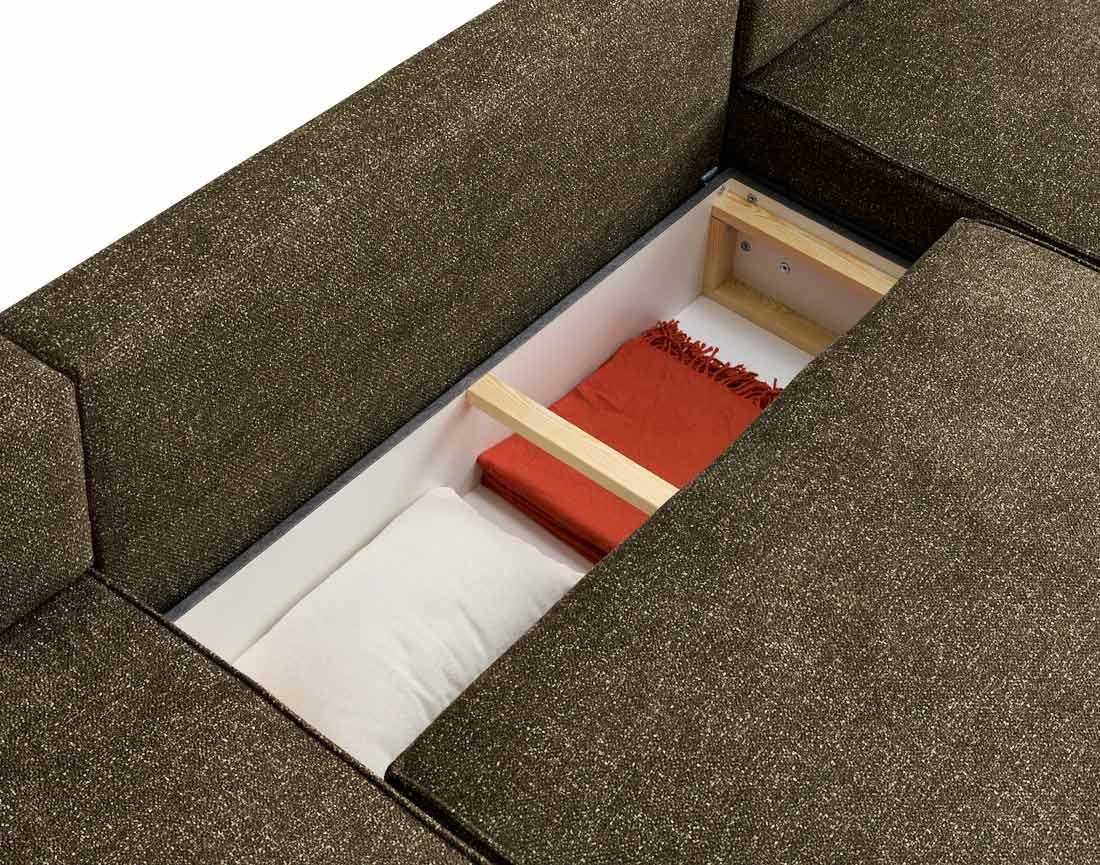 Apolline - canapé panoramique en U 7 places convertible avec coffres en tissu moucheté