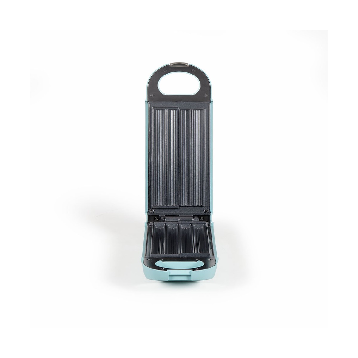 Puissance 800 W. Témoins lumineux de fonctionnement et de prêt à cuire. Revêtement antiadhésif. Thermostat automatique. Poignée thermorésistante. Capacité : 4 churros. Surface de cuisson : 12 x 20 cm. Profondeur de chaque plaque : 1 cm. Rotation à 360°C pour une cuisson homogène