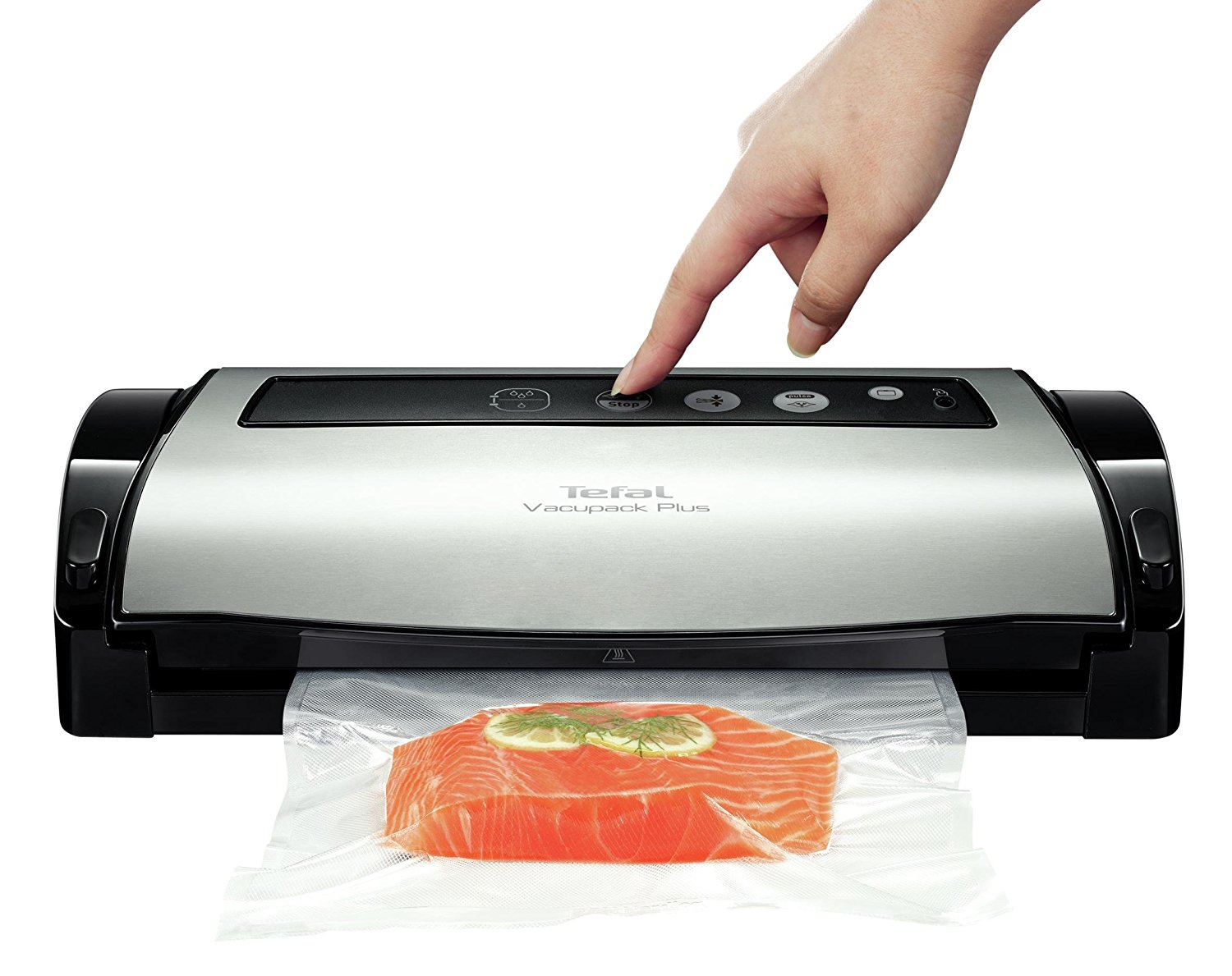 yy3107fb - appareil à emballage sous vide 130w noir/inox avec accessoires - Appareil à emballage sous vide Vacupack Plus Tefal YY3107FB conserve facilement toute la fraîcheur de vos aliments.Vide & soude automatiquementVacupack Plus conditionne hermétiquement les aliments dans un film plastique sous vide d?air pour une meilleure conservation.Préservez la saveur et la valeur nutritive de vos aliments plus longtemps.Quatre fonctions pour une utilisation intuitive de la mise sous vide, coupe à l?aide du couteau intégré le rouleau à la dimension désirée, vide et scellage automatiques, scellage seul et la fonction stop.Conservez la fraîcheur de vos aliments plus longtemps !Grâce à l'emballeuse sous-vide Vacupack Plus, dites Stop au gaspillage alimentaire. Conserver hermétiquement vos aliments dans un sac plastique sous vide d?air, pour préserver les saveurs et les nutriments de vos produits plus longtemps.Plusieurs fonctions sont disponibles pour s?adapter à votre utilisation et vos aliments : Coupe et soude, Vide et soude, sa fonction « Humide ou sec » adapte automatiquement la vitesse d?aspiration au type d?aliment choisi, ses fonctions « Soudure » et « Pulse » offrent un contrôle total afin de personnaliser manuellement l'extraction de l'air et la soudure.Son design et sa finition en inox s?adaptent parfaitement à une cuisine moderne. Pratique son range-cordon à l?arrière permet un gain de place. Facile à utiliserDéfinissez facilement la taille de votre sachet à l?aide du rouleau de film et du couteau intégré.Fonction « Humide ou sec »Permet d'adapter automatiquement la vitesse d?aspiration au type d?aliment choisi.Fonctions « Soudure » et « Pulse »Vous permet un contrôle manuel, idéal pour vous aliments les plus délicats tels que vos biscuits ou pâtisseries.2 rouleaux inclus + 2 boîtes repas et 1 tuyau d'aspirationLivré avec 2 rouleaux de conservation de tailles différentes : un moyen de 22 cm x 3 m et un grand de 28 cm x 3 m, ainsi que 2 boîtes repas sous vide de 600 ml et 800 ml et d'un tuyau d'aspiration convenant à la conservation au réfrigérateur. Les boîtes et leur couvercle passent au lave-vaisselle.PratiqueLe range-cordon à l?arrière vous facilite sont rangement.Design moderneSa finition inox s?intégrera parfaitement à votre cuisine.