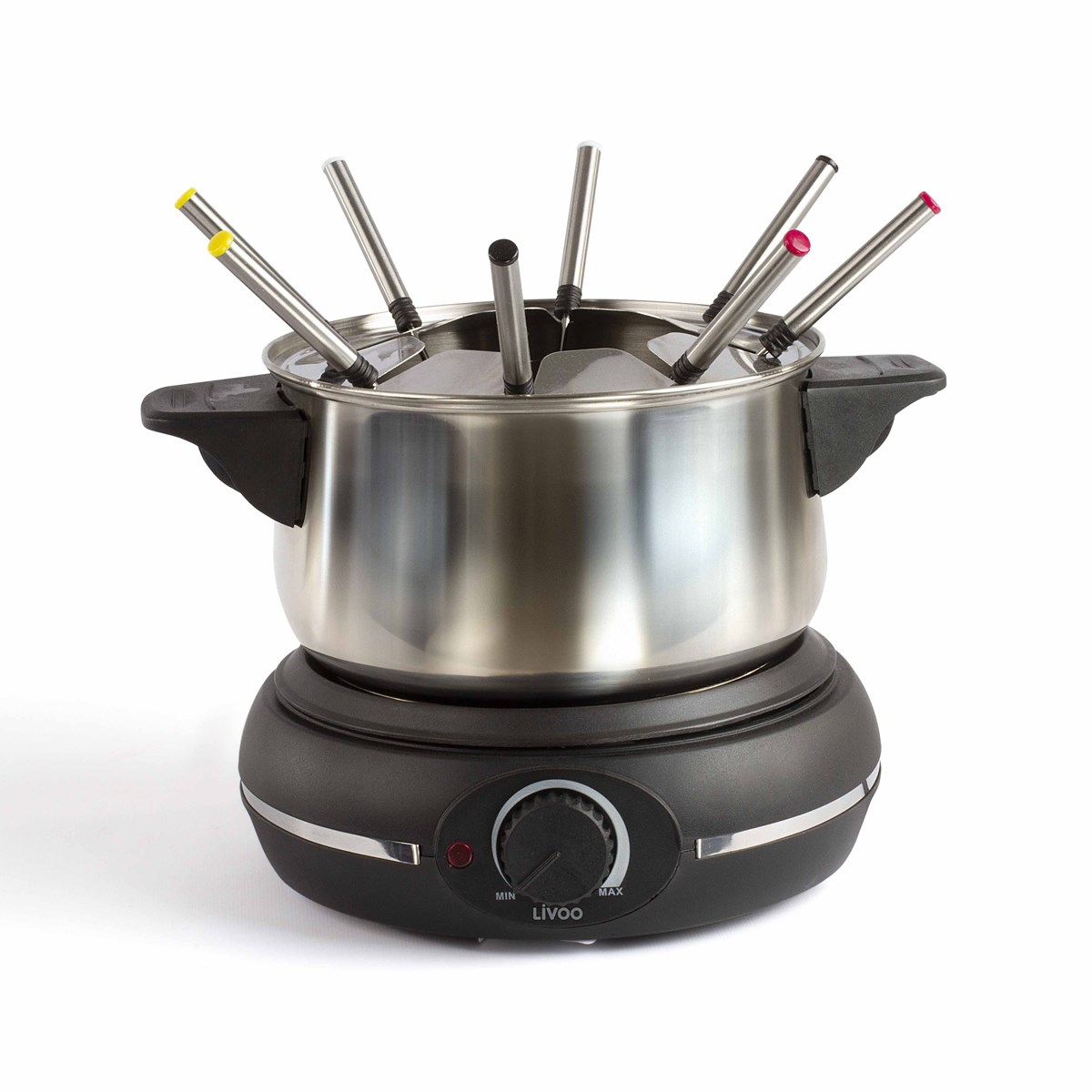 8 fourchettes à fondue avec marquage couleur et collerette anti- éclaboussures en acier inoxydable incluses