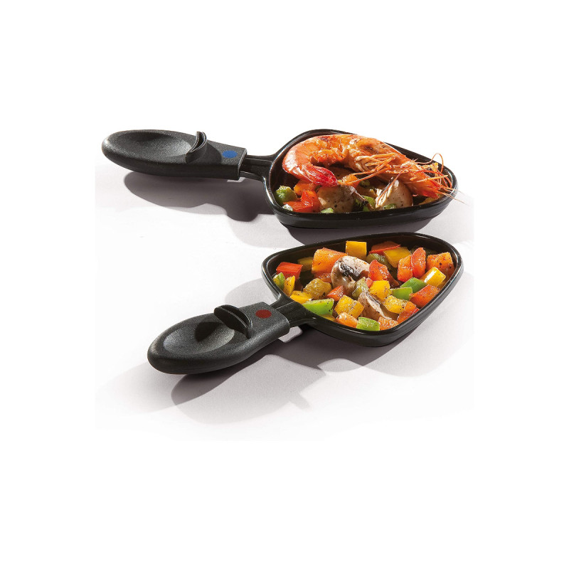 | Plus produit | Double fonction grill + raclette ; 8 poêlons individuels et moules polyvalents (mini-pancakes, œufs au plat) ; accessoires lavables au lave-vaisselle ; spatules en bois incluses |