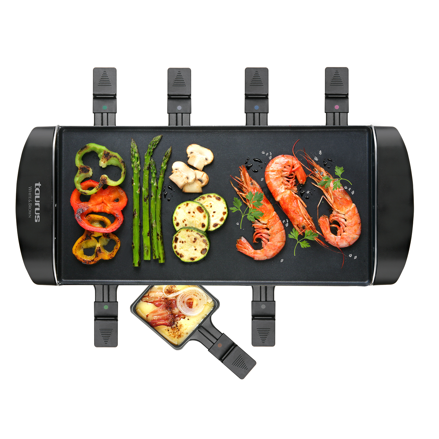 Appareil à raclette 8 personnes 1400w + grill + plancha - arizona - taurus white and brown