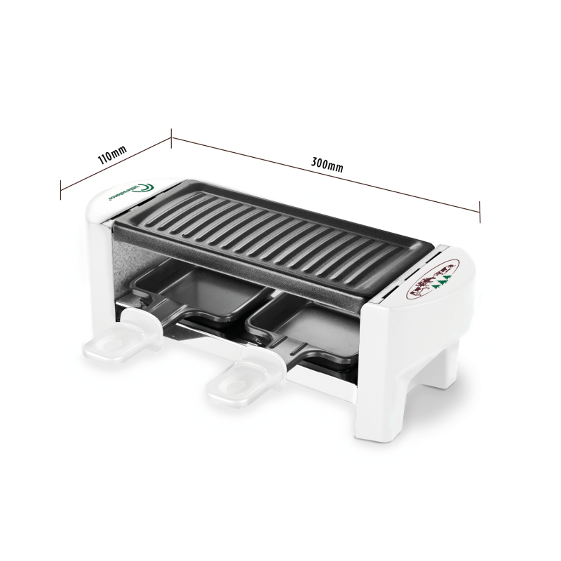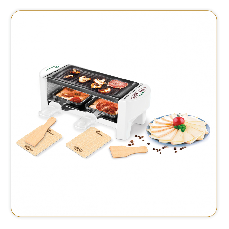 Design Meuuuh...! différenciant + 2 spatules + 2 planchettes La jolie petite raclette ultra-compacte pour deux personnes 320W - grill amovible - poêlons Cool Touch