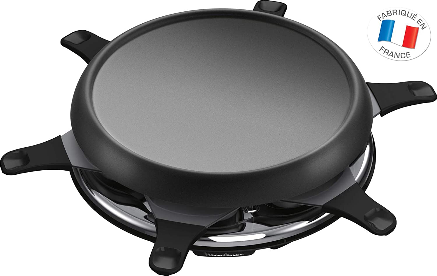 Plaques 3 fonctions: raclette, plancha, crêpier Plaque amovible anti-adhésive pour une utilisation et un nettoyage facile. Fabriqué en haute Savoie Puissance: 700 W, 6 coupelles incluse: Idéal pour rassembler tous vos amis Bouton marche/arrêt: confort optimal autour de la table.
