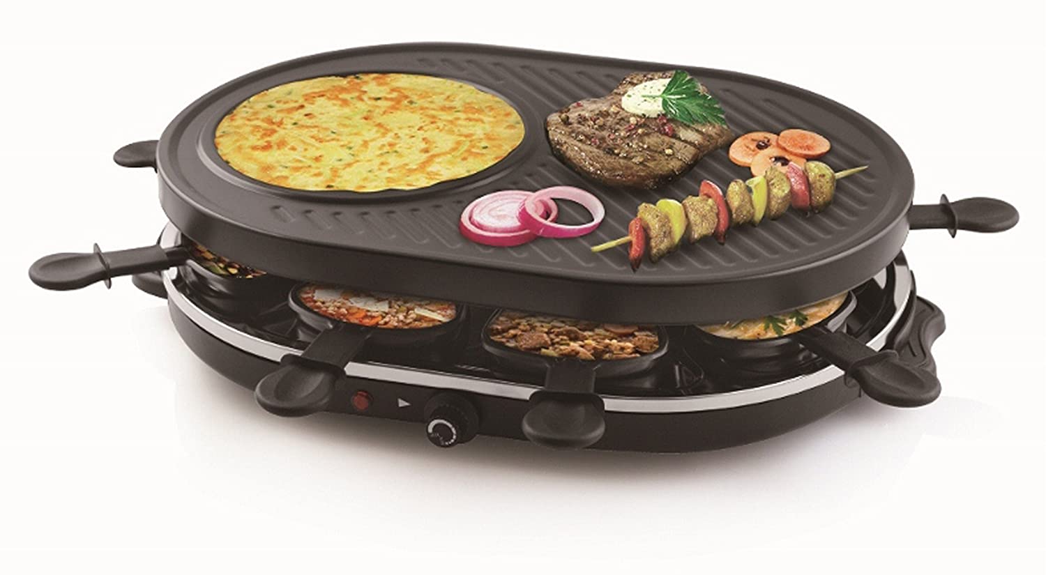 Libellé appareil à Raclette multifonctions 4 en 1 pour 8 personnes 1200W noir