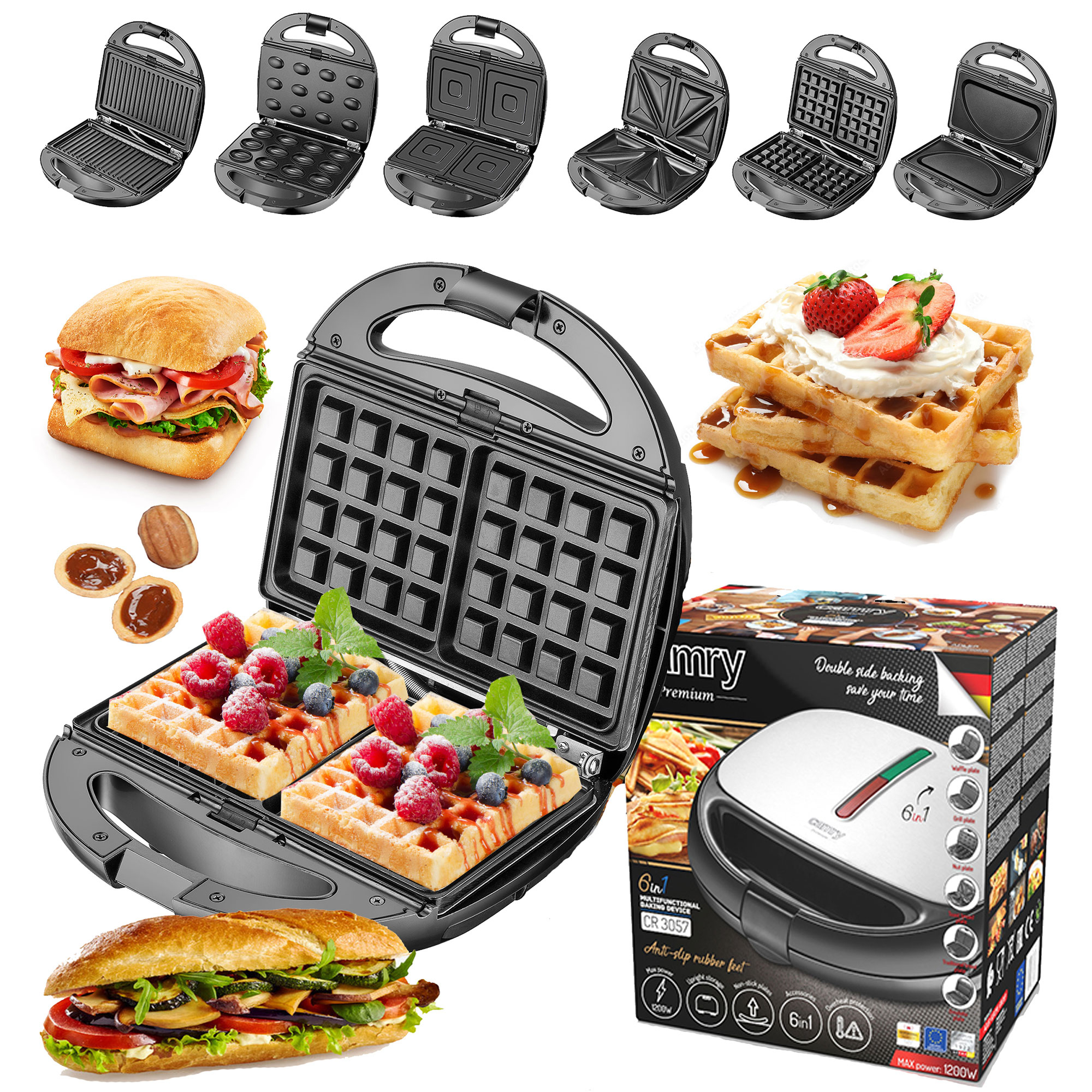 Appareil à Sandwich Maker 6 en 1, Plaques Interchangeables, Gaufrier, Grille 1200 CamryCR3057