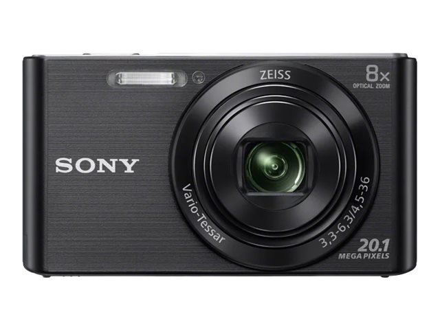 Sony DSC-W830. Type d'appareil photo: Appareil-photo compact, Mégapixel: 20,1 MP, Type de capteur: CCD (dispositif à transfert de charge), Résolution d'image maximale: 5152 x 3864 pixels. La sensibilité ISO (max): 3200. Zoom optique: 8x, Zoom numérique: 64x, Longueur focale: 4.5 - 36 mm. Vitesse maximale d'obturation de la caméra: 1/16000 s. Résolution vidéo maximale: 1280 x 720 pixels. Taille de l'écran: 6,86 cm (2.7"). Mémoire interne: 27 Mo. Poids: 104 g. Couleur du produit: Noir